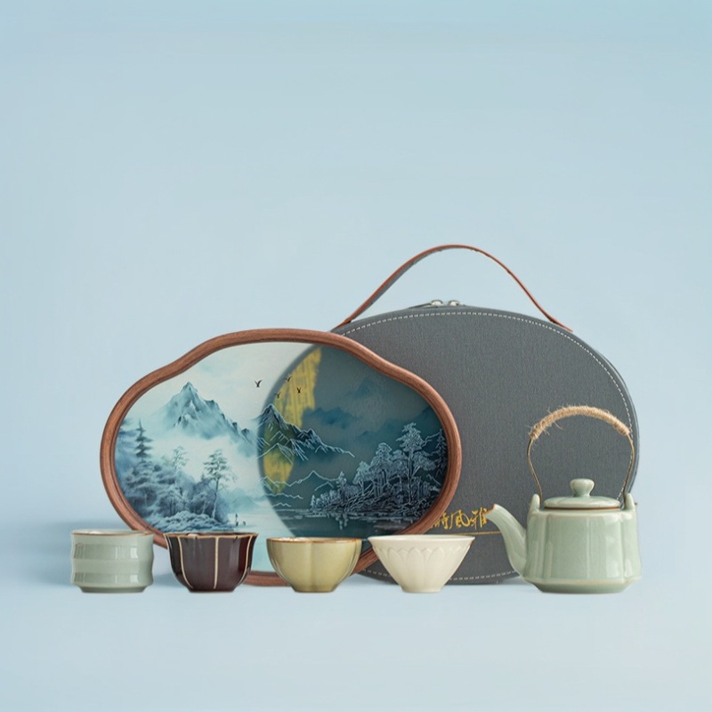 父の日アンティーク高級五大窯ティーセットポータブルトラベルカンフーティーセット1ポット4カップギフト