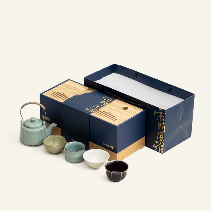 紫禁城文化創物の五大名窯茶器セット、家庭用功夫茶カップ、高級陶磁器茶器ギフト、上司への贈り物