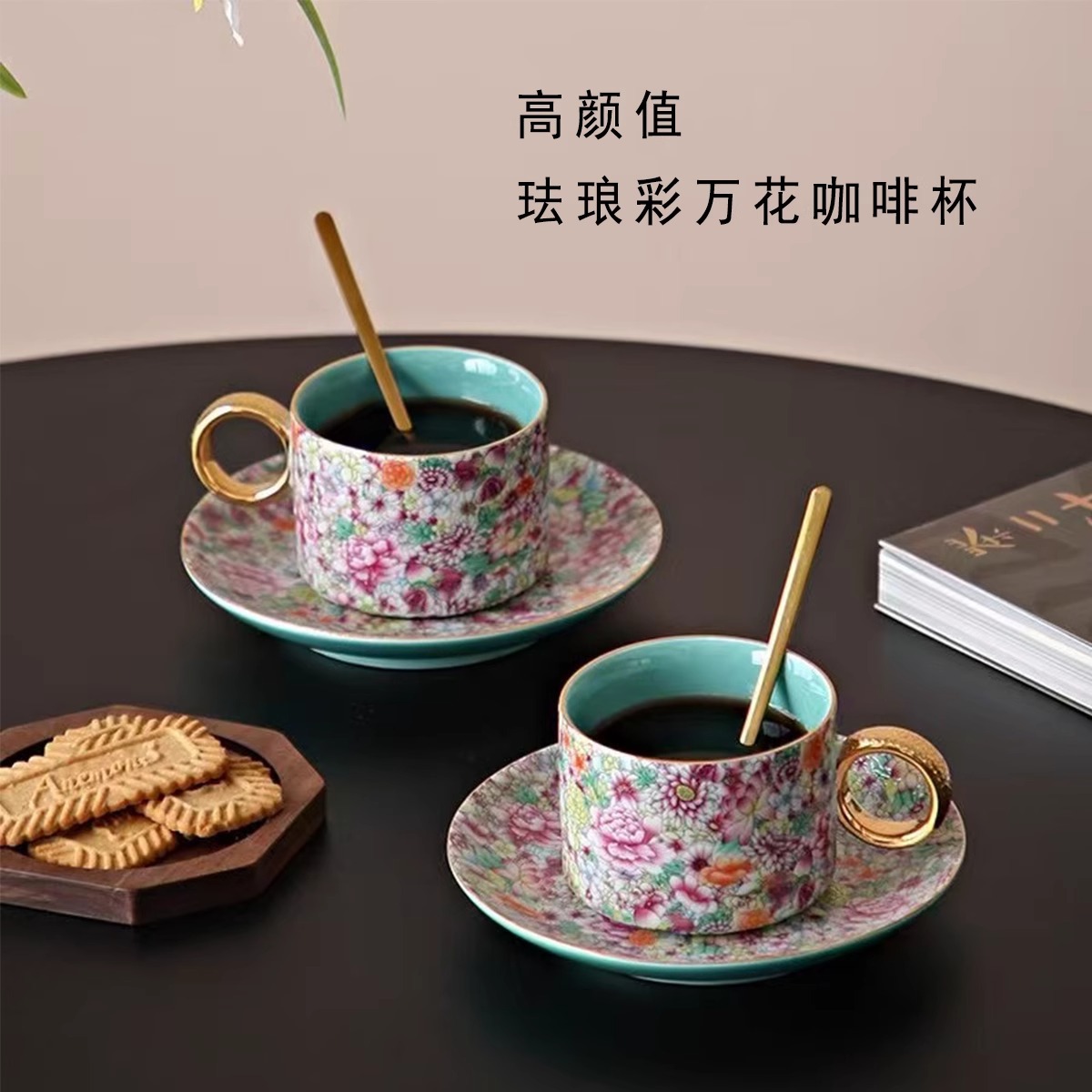 エナメルコーヒーカップとソーサーセット高級ギフトボックスセラミックラテカップ女性の特別なウェディングギフトセット