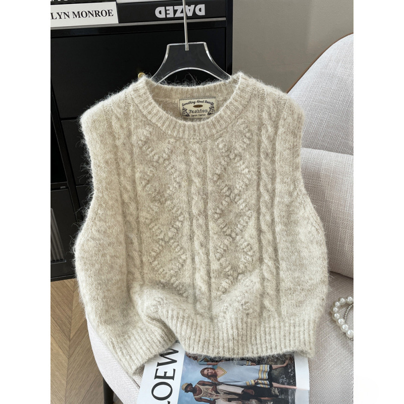 高级感麻花纹理圆领毛衣马甲女秋冬新款宽松叠穿针织背心上衣外穿
