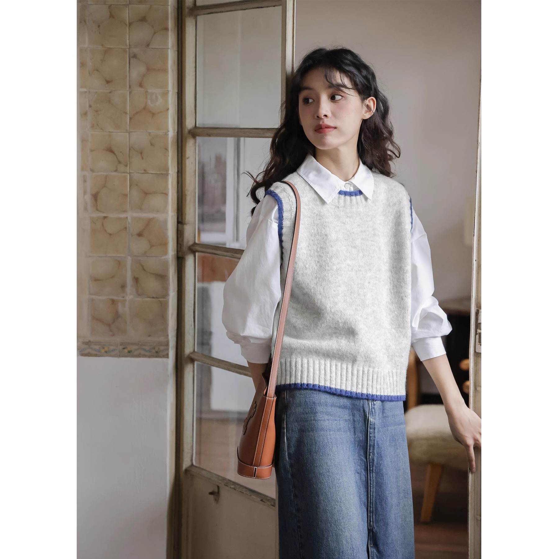 圆领复古软糯针织衫无袖毛衣背心马甲女秋冬叠穿外搭马夹法式上衣
