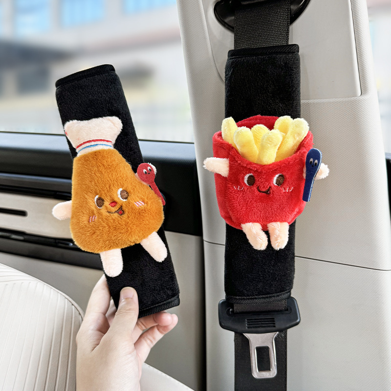 国境を越えた人気の車のシートベルトショルダーカバーフライドポテトチキンレッグショートベルベット漫画かわいい車のシートベルト保護カバー