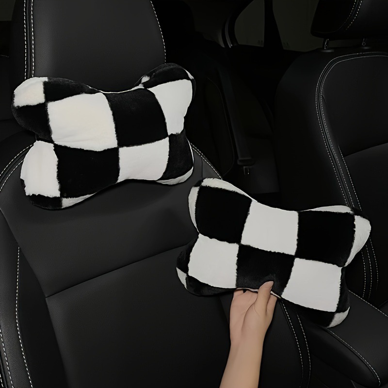 国境を越えた外国貿易の売れ筋車のヘッドレストユニバーサルネックピロー黒と白のチェック柄車の枕枕ドロップシッピング