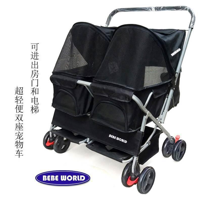 2人乗りペットベビーカー、ダブルスリーピングベッドベビーカー、折りたたみ式、取り外し可能、洗える猫と犬の幅広ケア外出ペットベビーカー