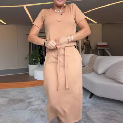 2025早秋新款精致优雅气质时尚柔软亲肤显瘦极简百搭收腰连衣裙