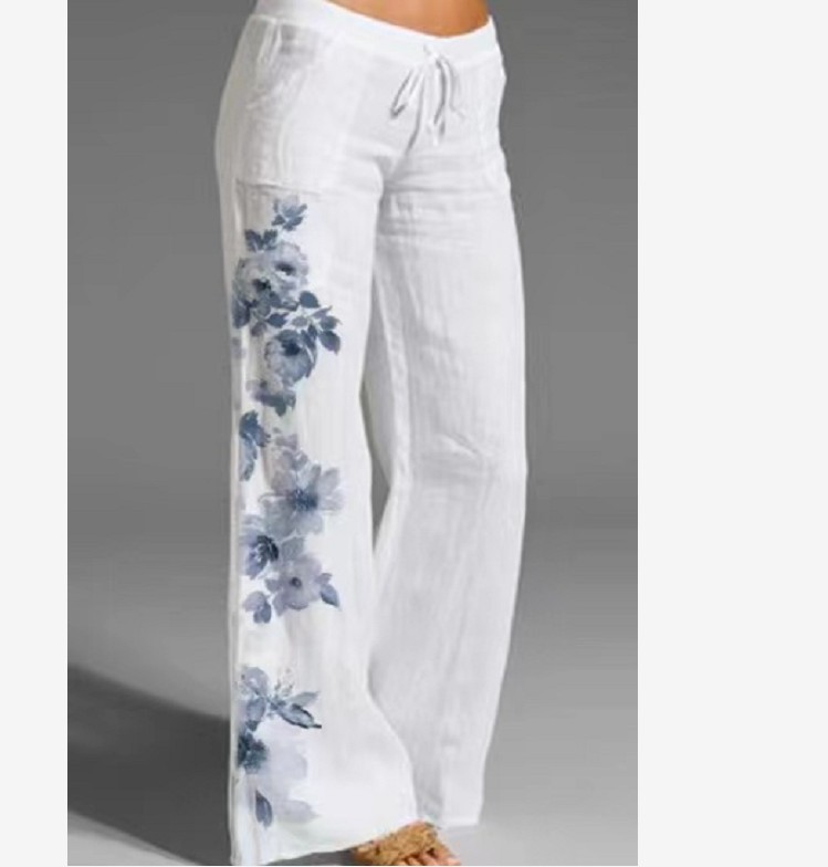 現物アマゾンクロスボーダー2024秋新型欧米対外貿易婦人服ファッションカジュアルプリント地衣長ズボンカバー