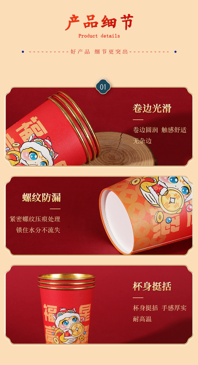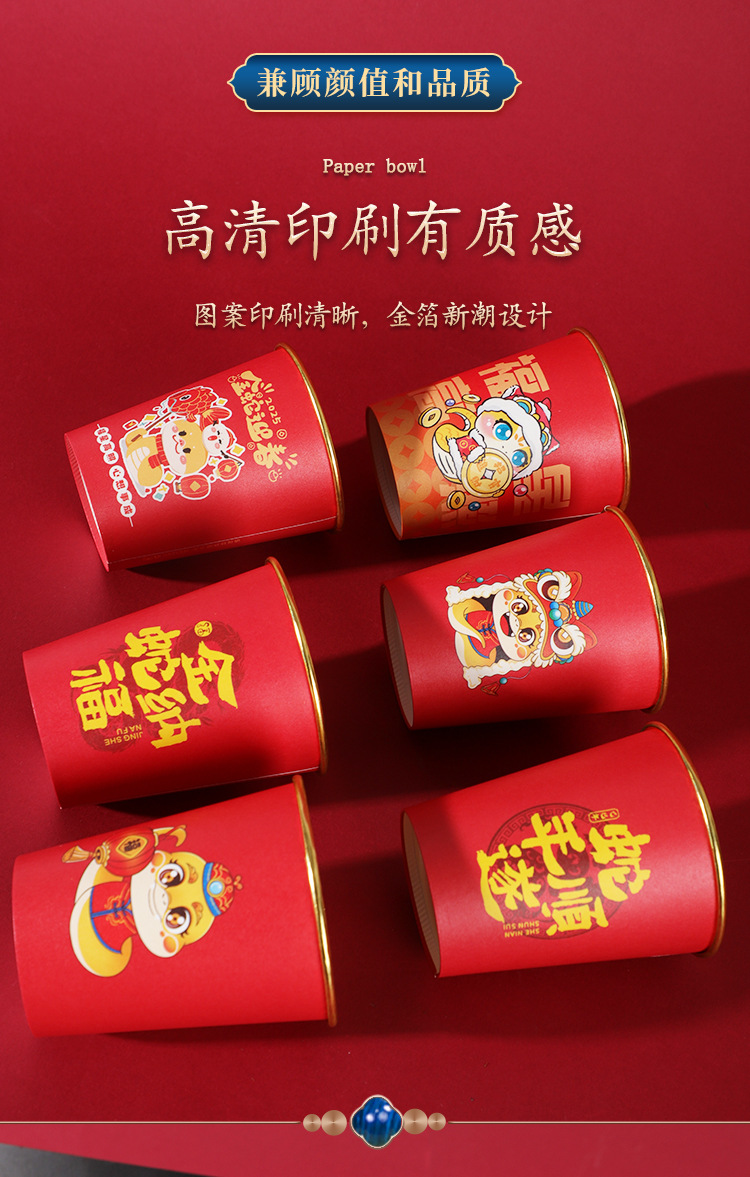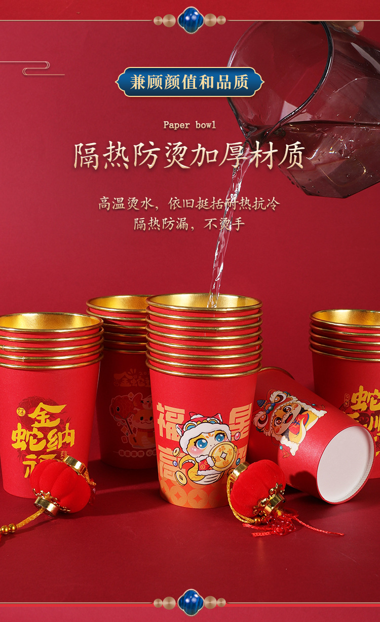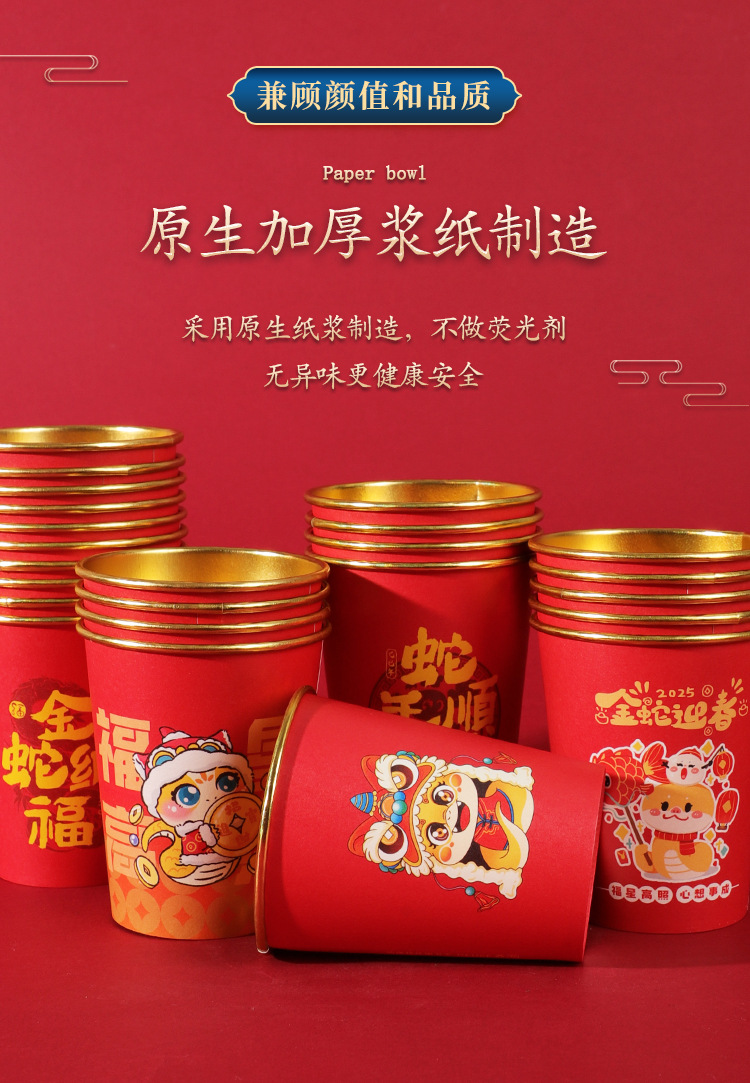2025蛇年新年紙コップ使い捨て金箔紙コップ年越しカップ旧正月家庭用赤いお祝い卸売り