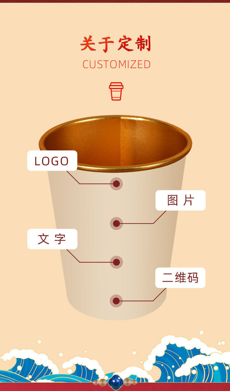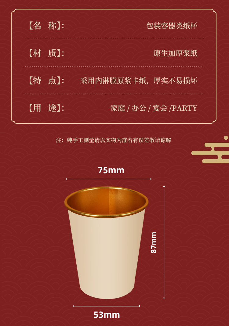 结婚一次性纸杯商用定制酒席金箔纸杯过年春节庆喜杯50个装喝水杯