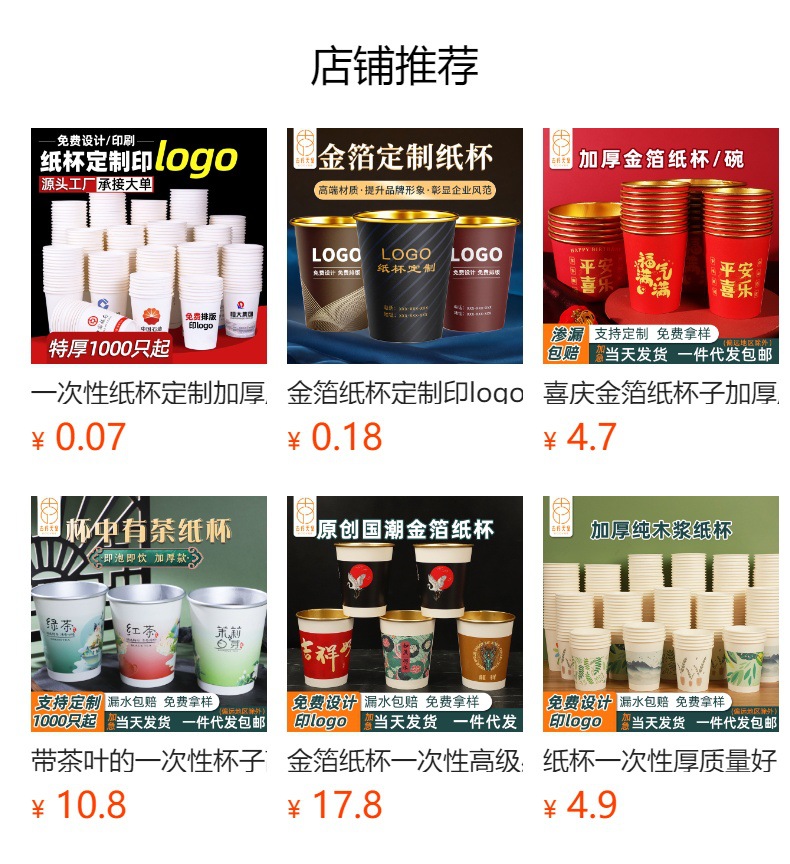使い捨てコップ卸売りカスタムロゴ商用注文広告紙コップ9オンス厚いお茶カップ