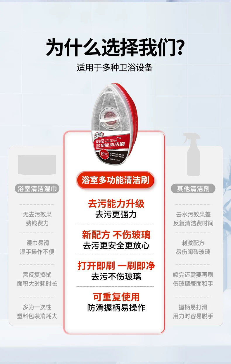 浴室多功能清洁刷玻璃瓷砖除水垢淋浴房强力去污开盖即用方便快捷