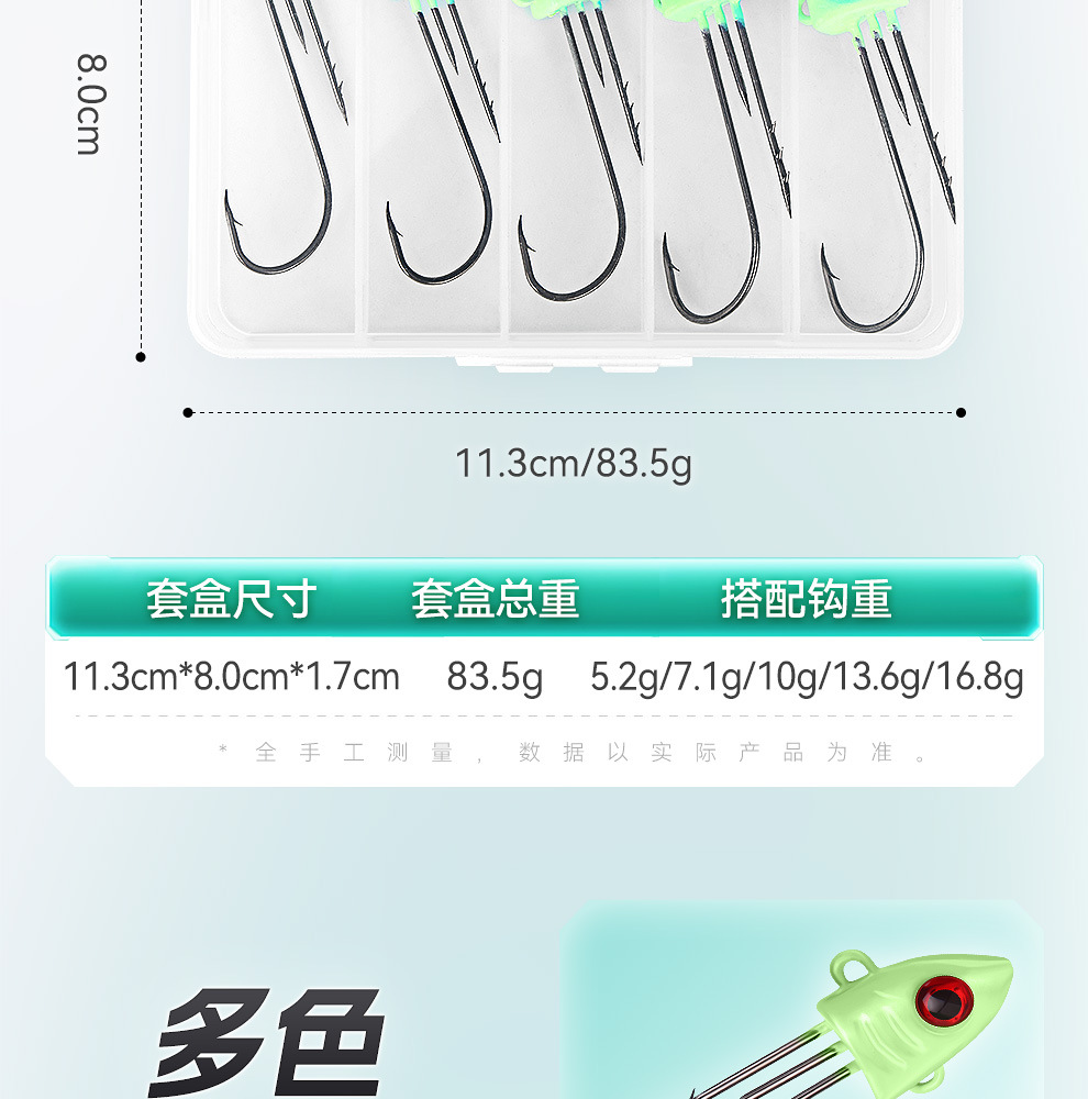 颜色 夜光色5g,夜光色7g,夜光色10g,夜光色13g,夜光色16g,夜光色20g,夜光粉背5g,夜光粉背7g,夜光粉背10g,夜光粉背13g,夜光粉背16g,夜光粉背20g,夜光蓝背5g,夜光蓝背7g,夜光蓝背10g,夜光蓝背13g,夜光蓝背16g,夜光蓝背20g,夜光色5只装(5格挂饵盒C款),夜光粉背5只装(5格挂饵盒C款),夜光蓝背5只装(5格挂饵盒C款),混搭套装5只装(5格挂饵盒C款)