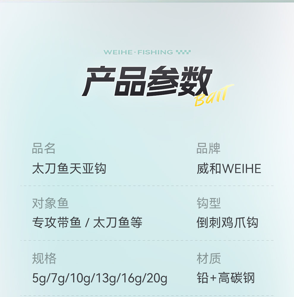 威和体育太刀鱼天亚夜光路亚鱼钩太刀鱼天亚5g13g20g5只套装跨境