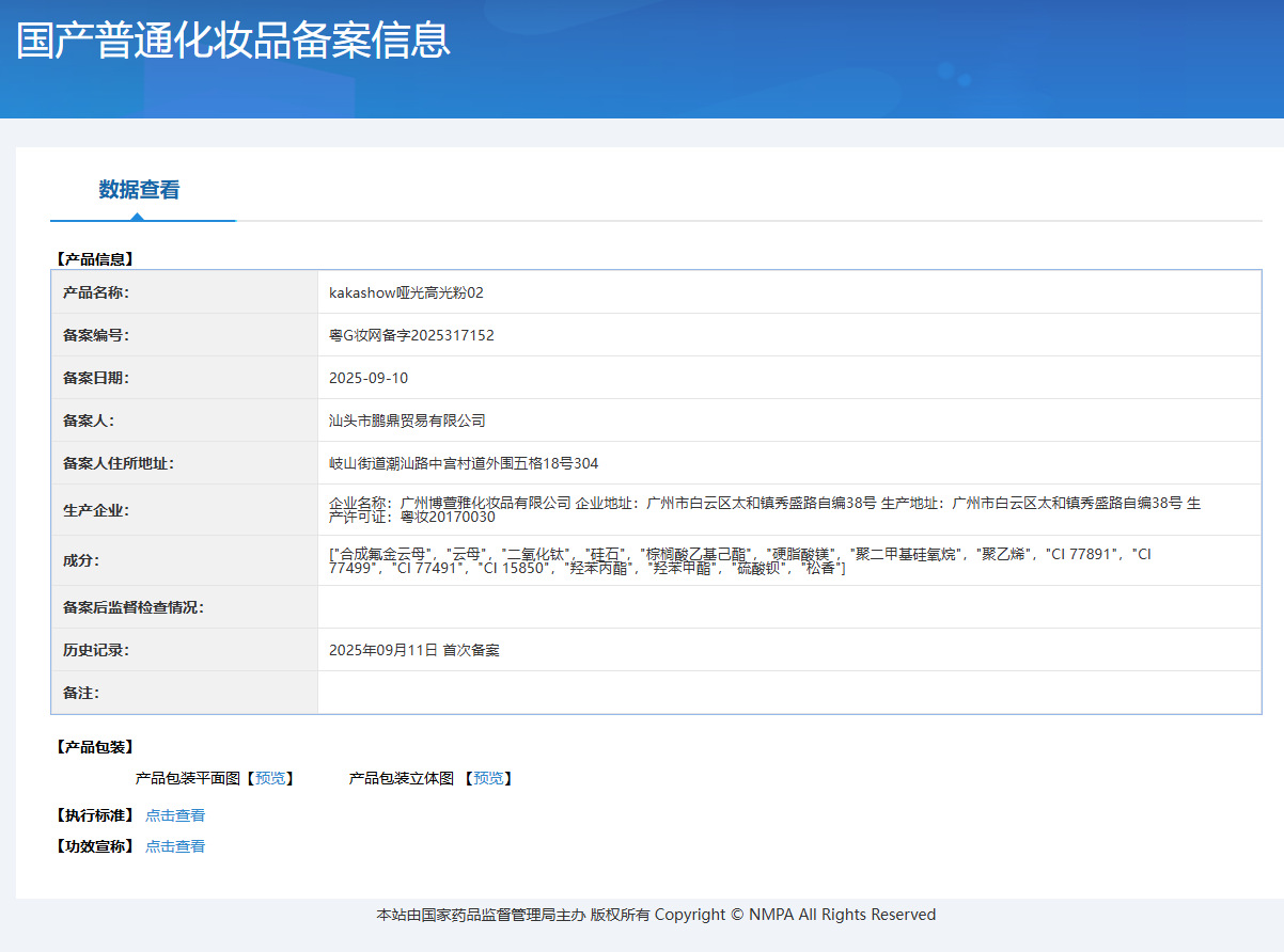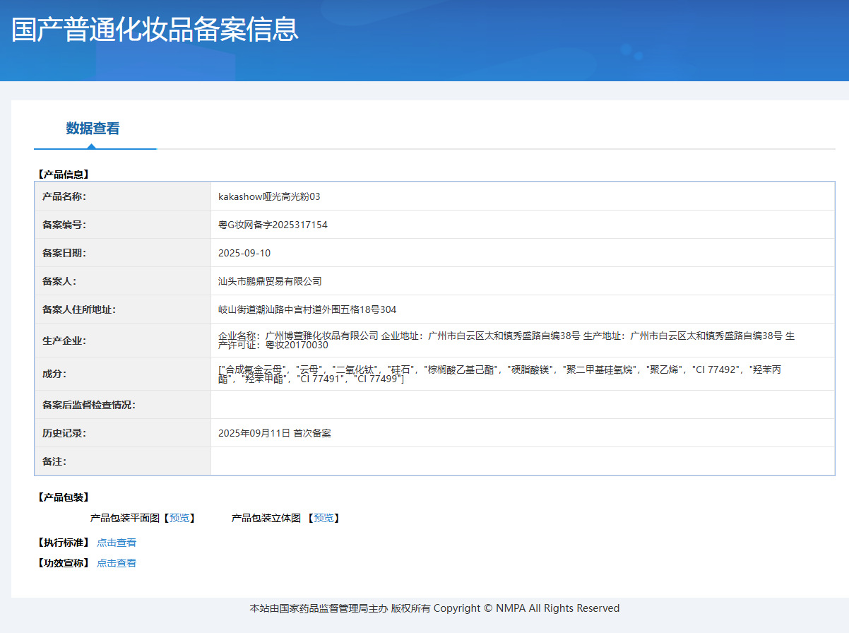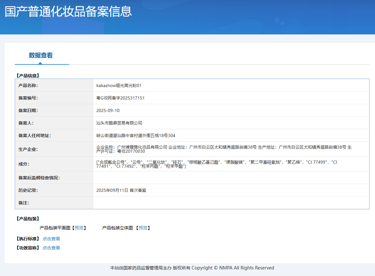 非特化妆品备案证号 粤G妆网备字2025317151