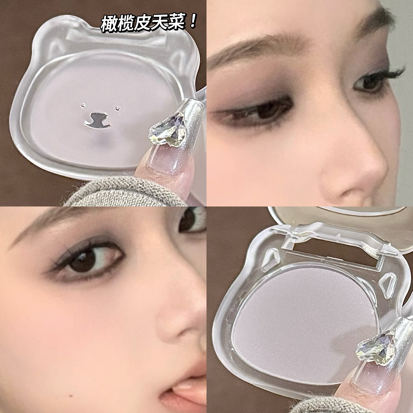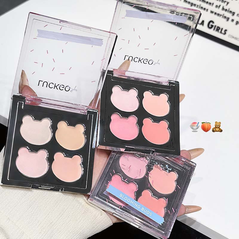LUCKGO嘭润小熊四色高光盘哑光氛围感腮红膏修容粉眼影一体多用盘