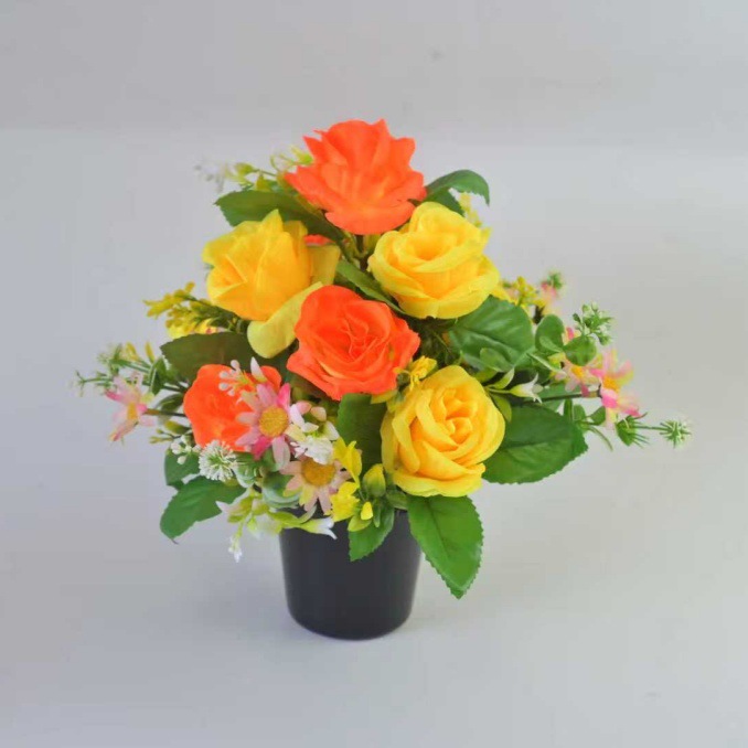 恒方造花工場直販 バラ盆栽 シルクフラワー ローズフラワー 造花 13頭仙桃バラ 清明花 盘花