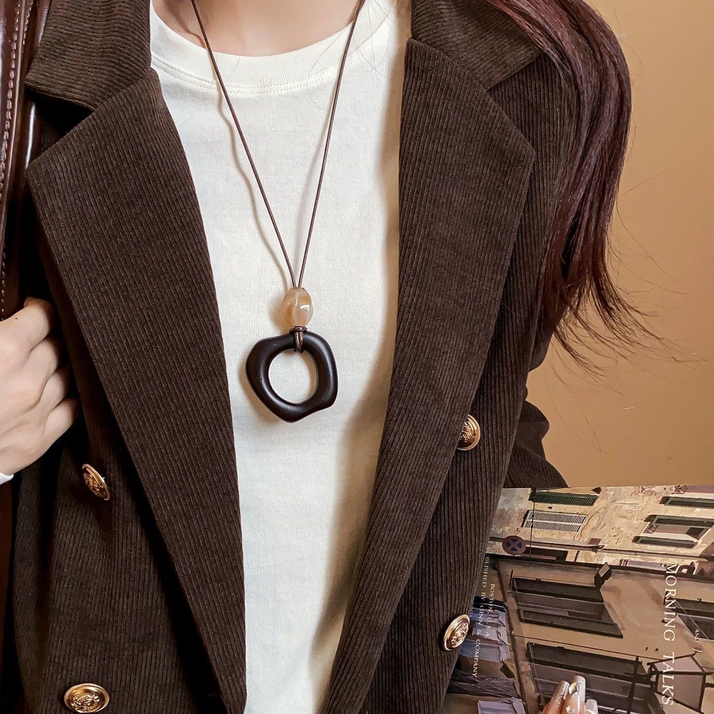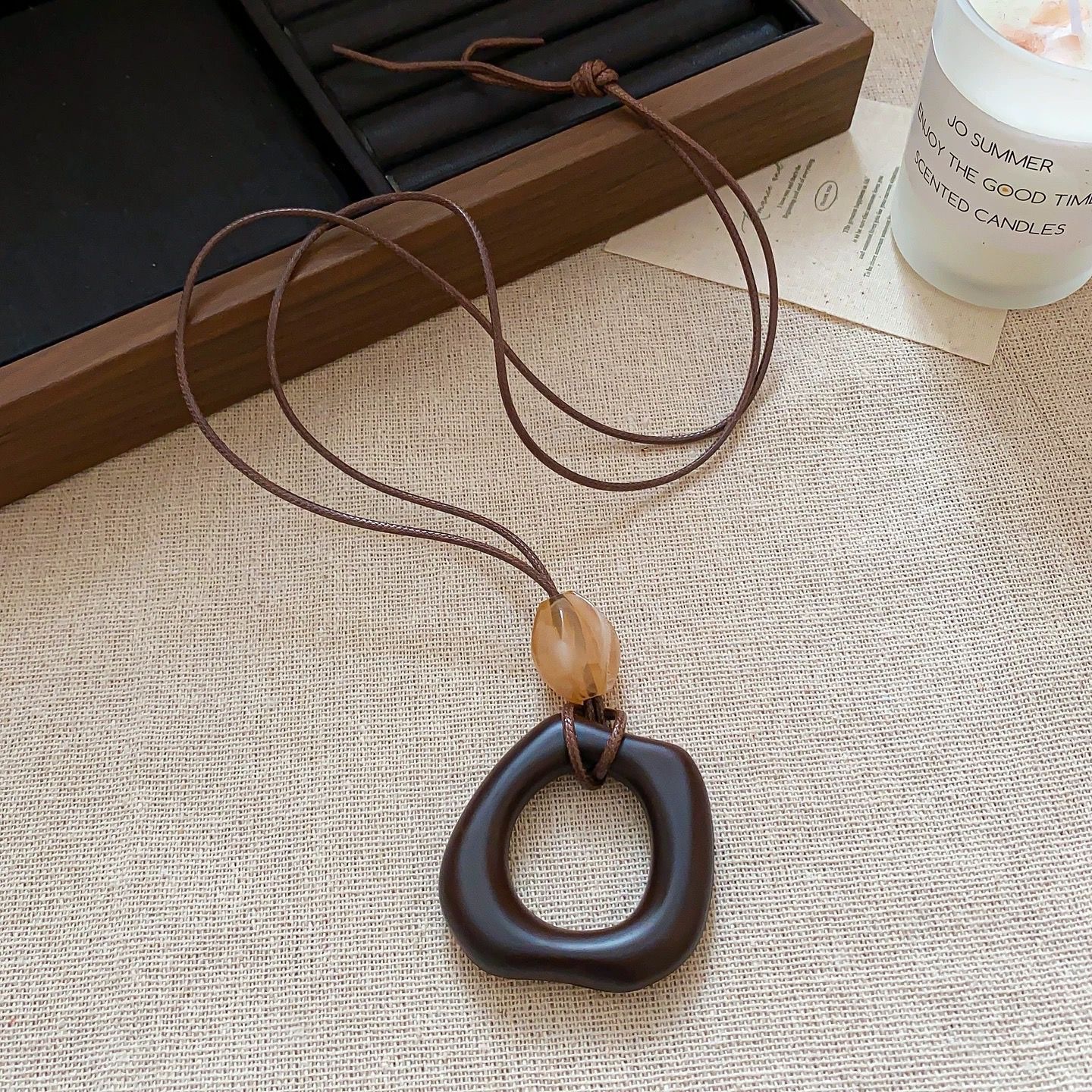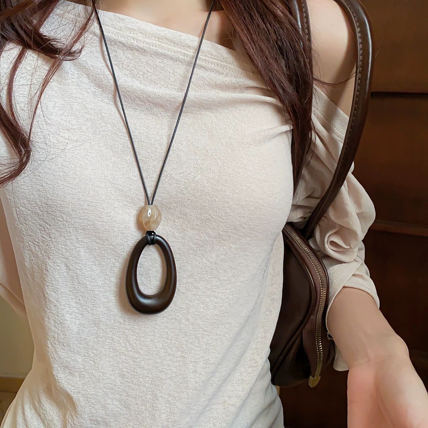 颜色 木色椭圆吊坠项链,木色方形吊坠项链