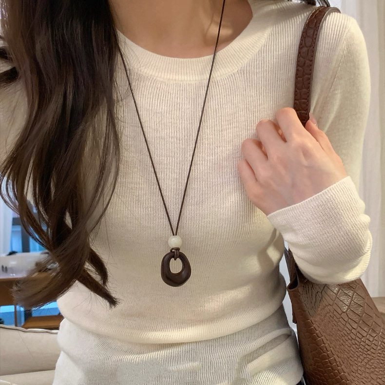 简约几何咖色仿木头吊坠长款项链潮流小众个性时尚百搭颈链毛衣链