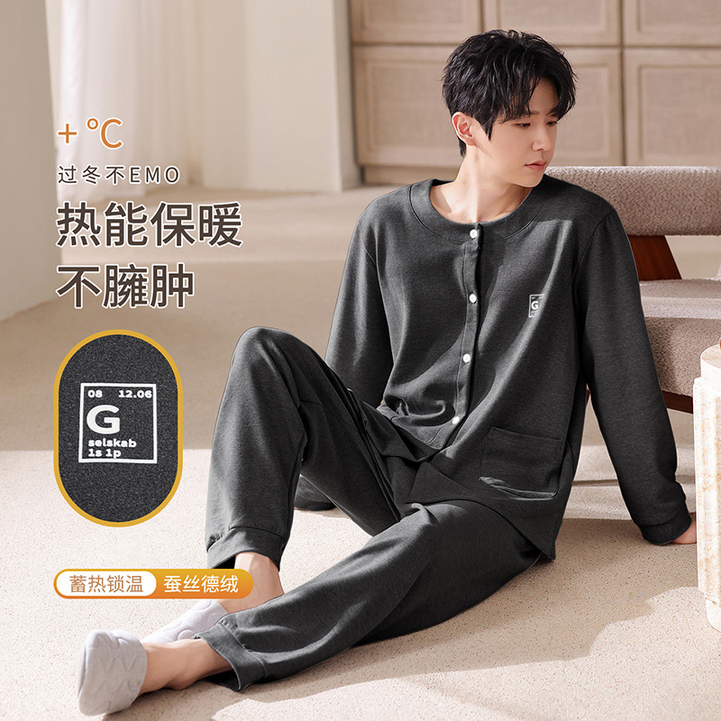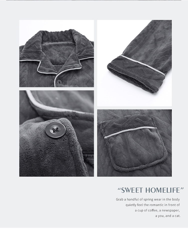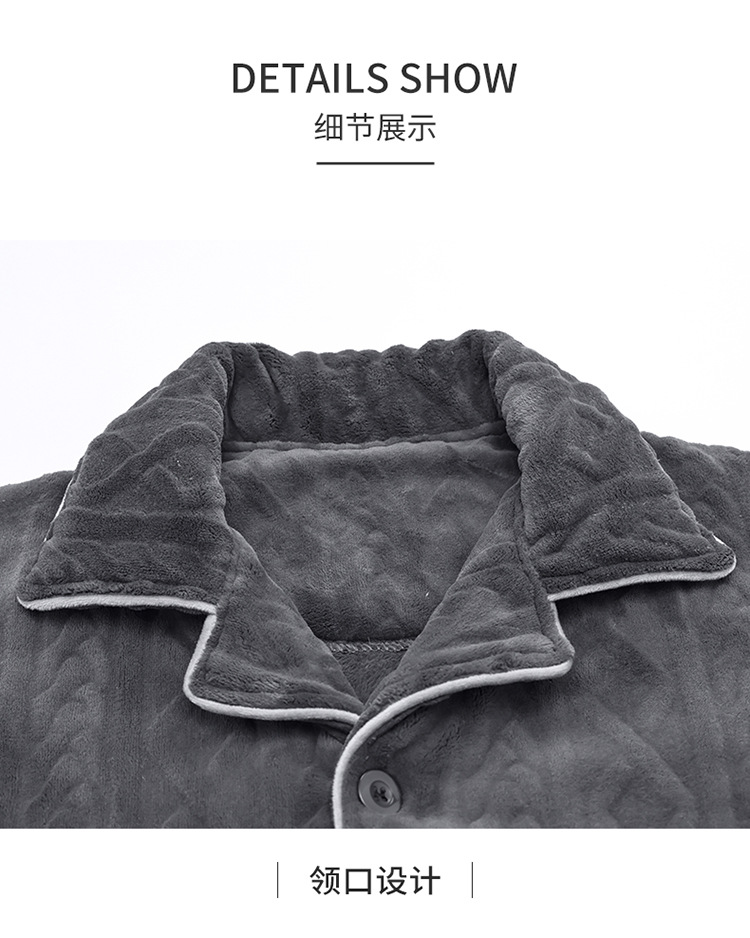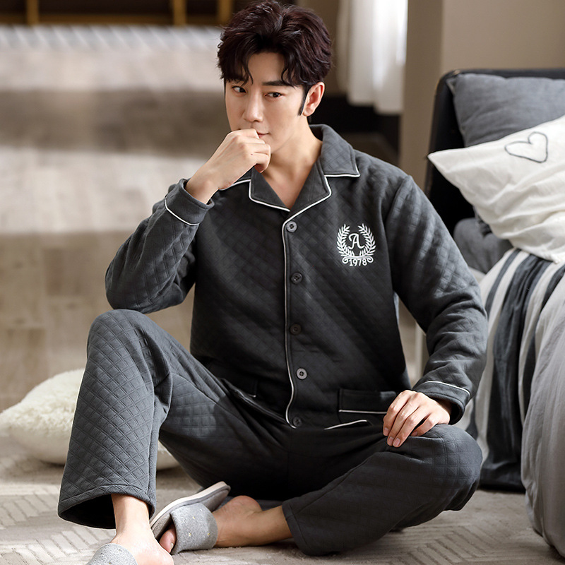 パジャマ男性秋冬サンドイッチ厚綿質長袖長ズボンシンプルでゆるいカーディガンカジュアルで快適な家庭服