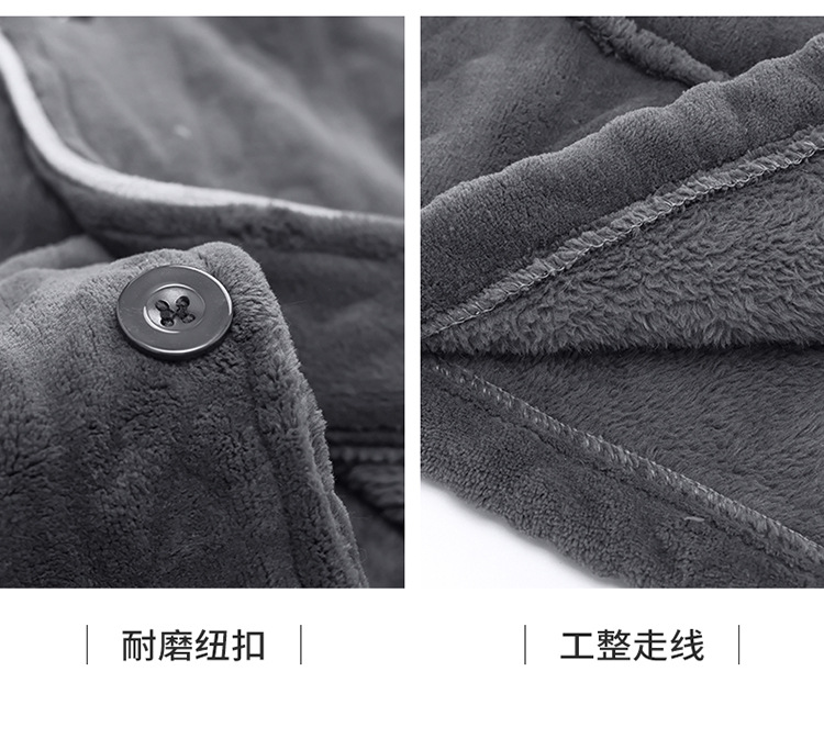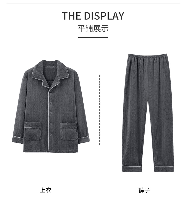 休闲保暖德绒睡衣男秋冬磨毛加厚开衫长袖长裤家居服套装男士睡衣
