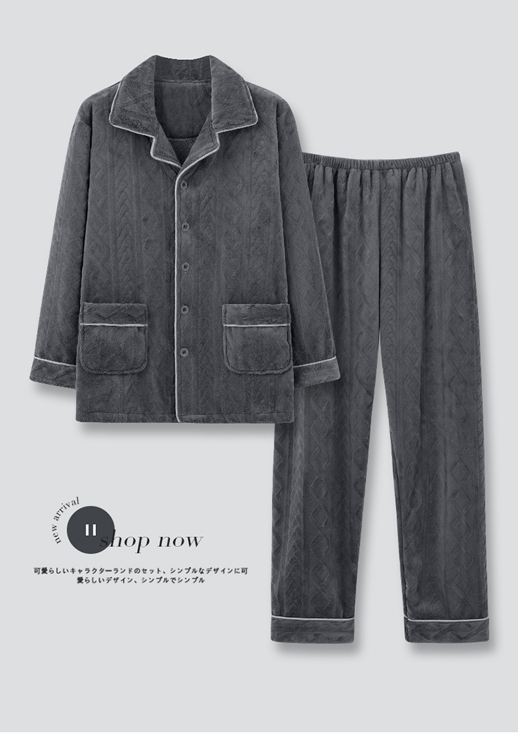 パジャマ男性秋冬モデルの厚いベルベットの保温長袖コーラルベルベットの大サイズのカーディガンの家庭服セット