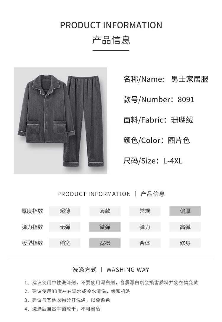 珊瑚绒睡衣男秋冬款加厚加绒法兰绒保暖男士加大码家居服套装批发