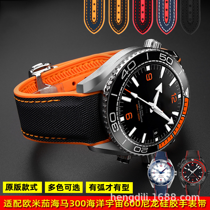 オメガ海馬海洋宇宙600 300天文台シリーズナイロンゴムシリコン腕時計バンド男