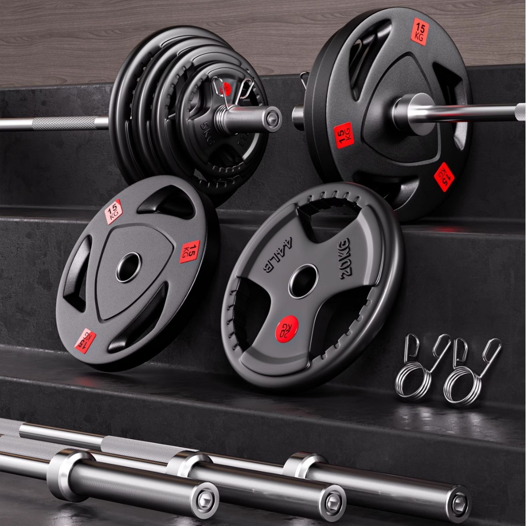 ゴム入りバーベル片大孔鋳鉄手掴み曲奥棒20kgバーベル棒重量挙げ100kgバーベルセット