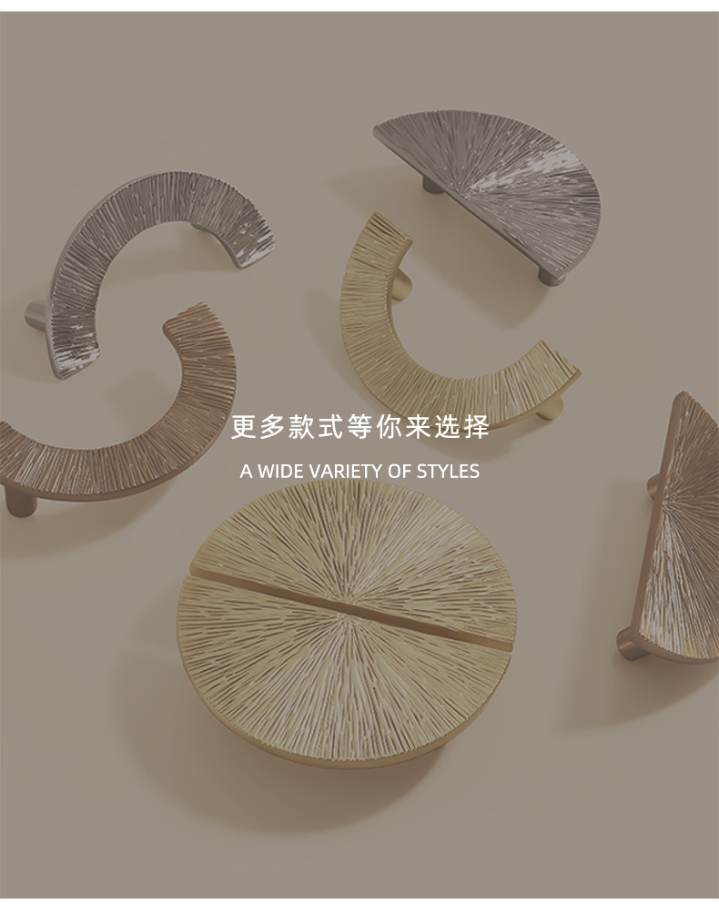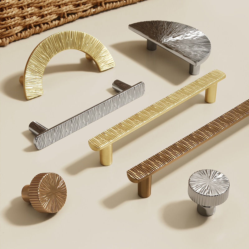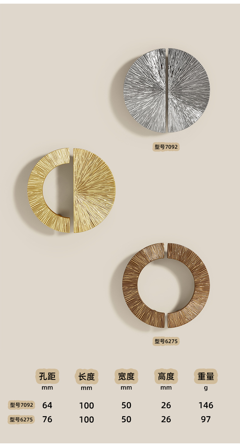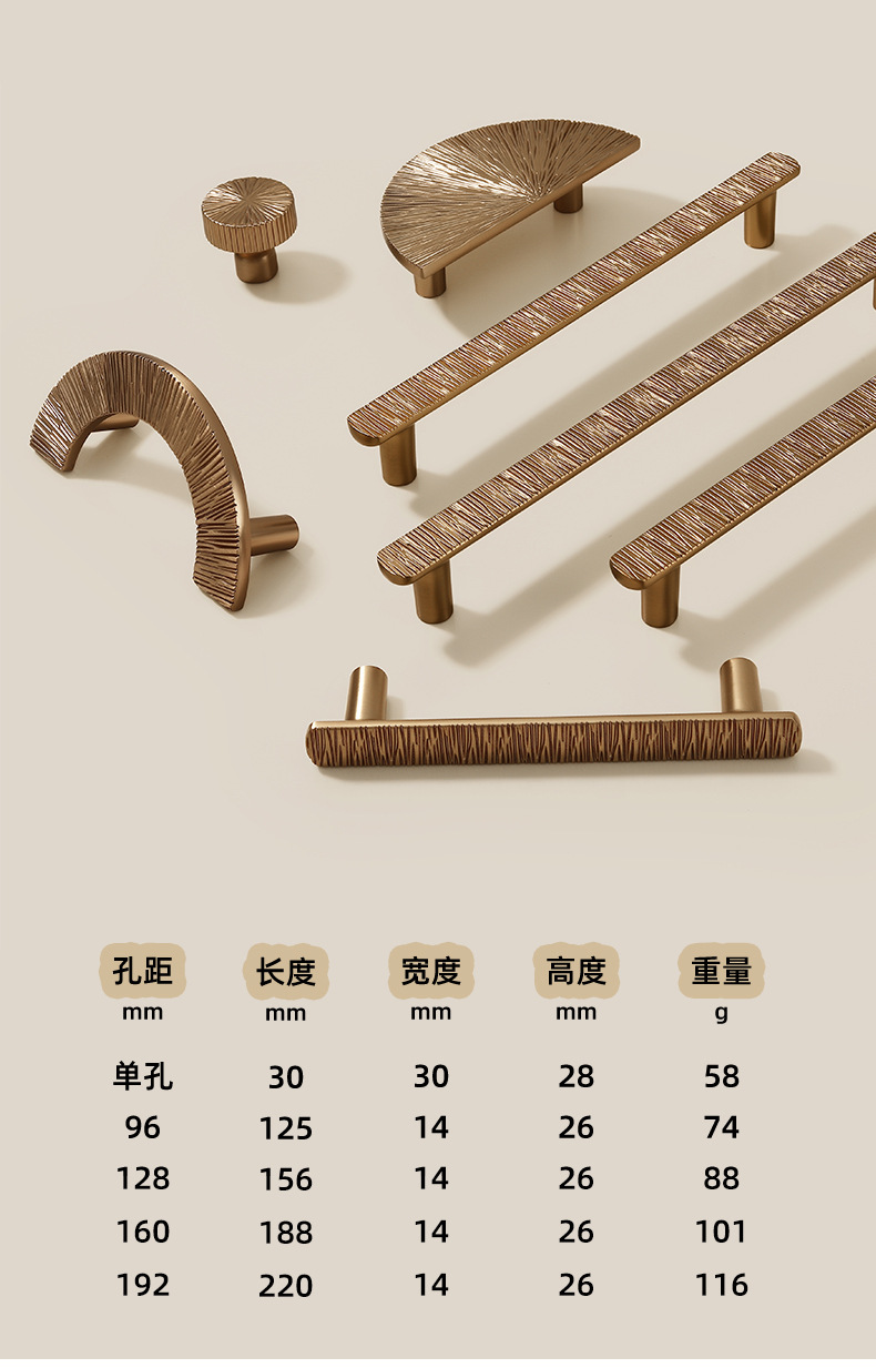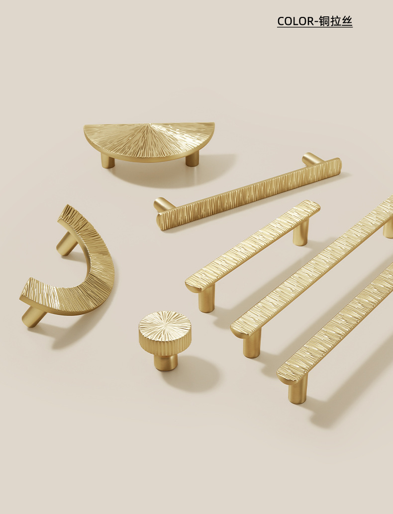 锌合金直线锤纹半圆形金色把手轻奢抽屉柜门衣柜电镀中古风拉手