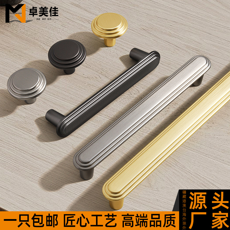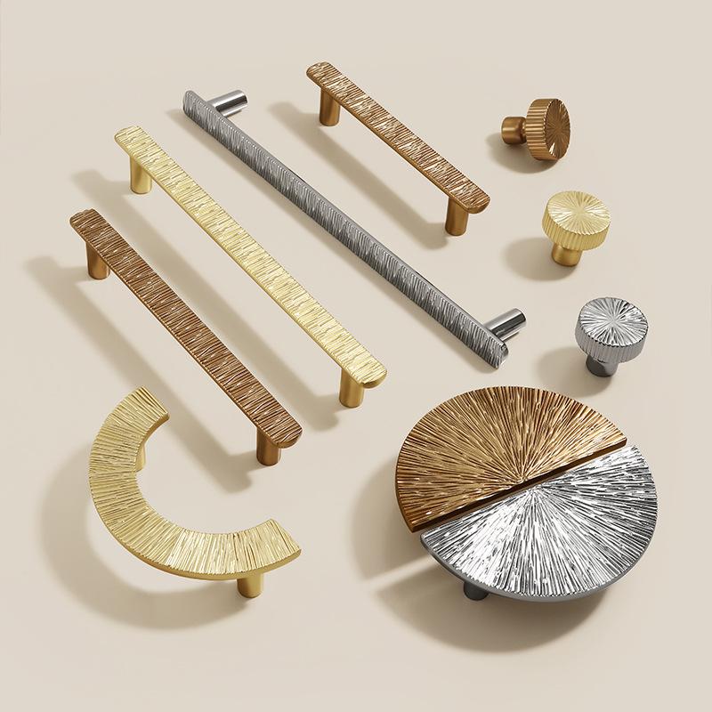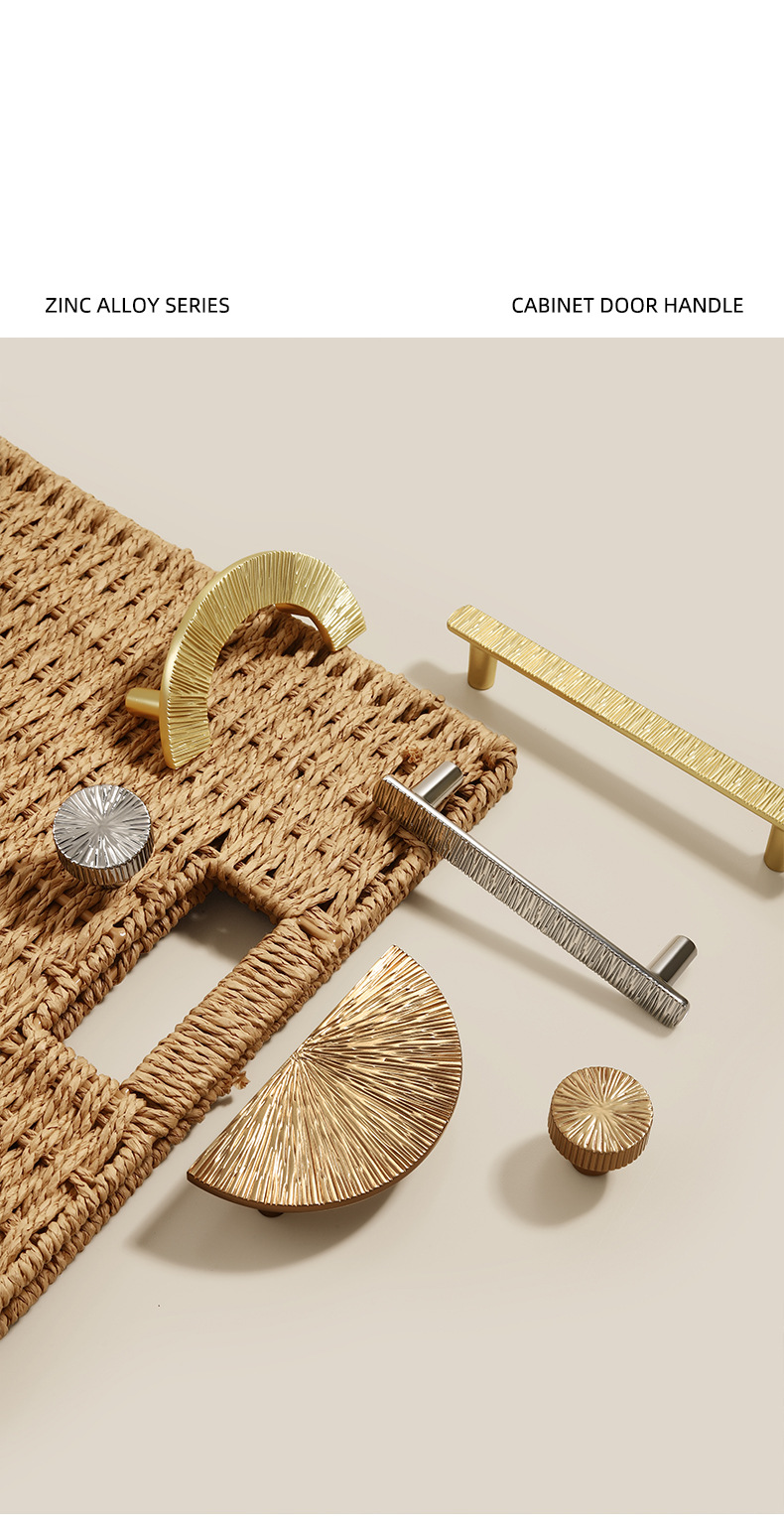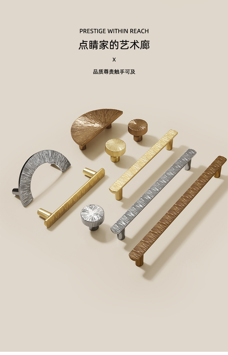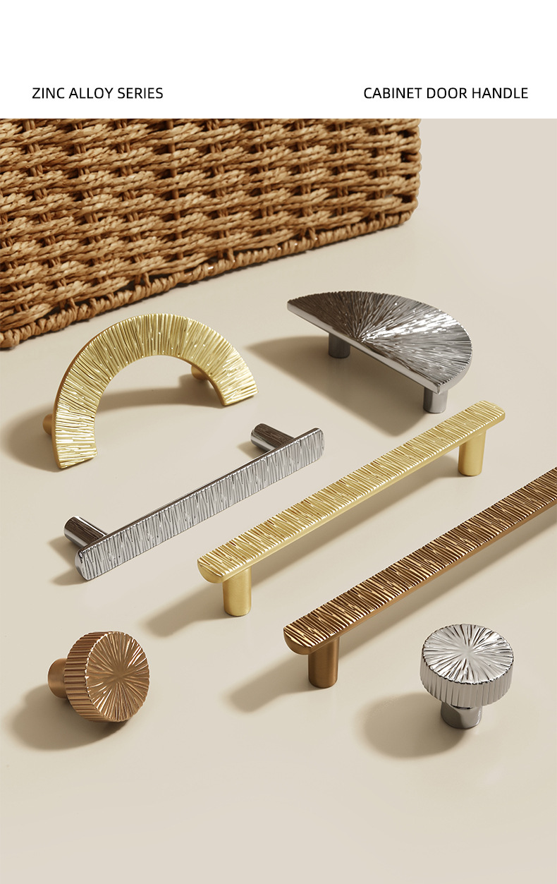 锌合金直线锤纹半圆形金色把手轻奢抽屉柜门衣柜电镀中古风拉手