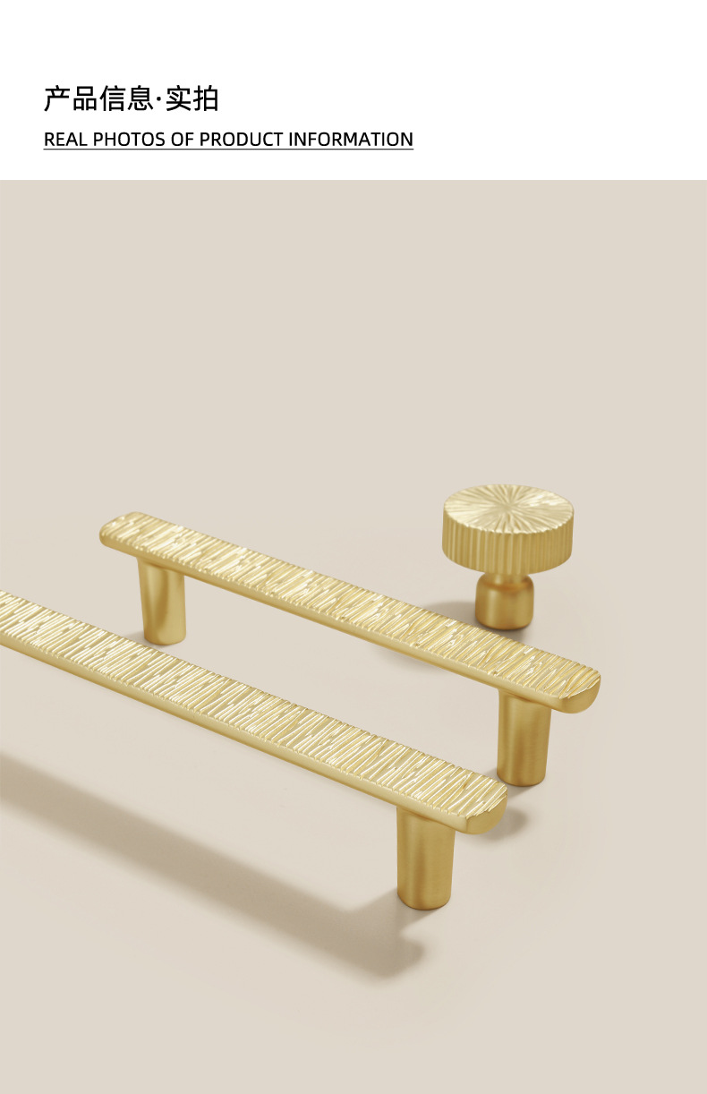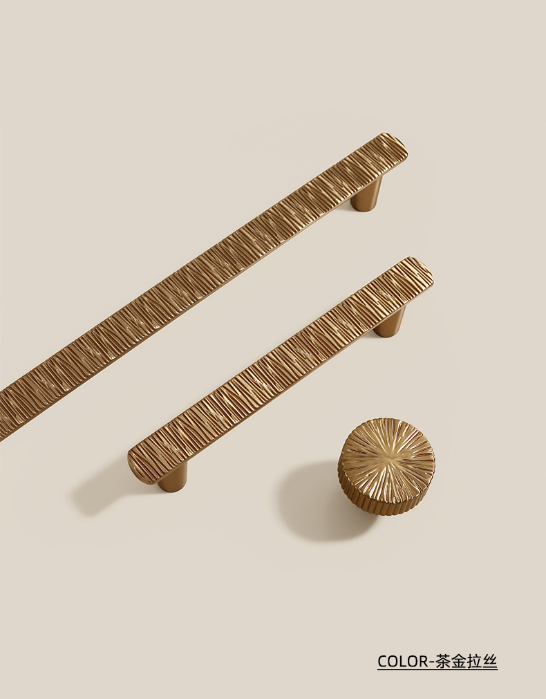 轻奢金色家具金属圆球柜子把手中古风黄铜锤纹长条抽屉衣柜门拉手