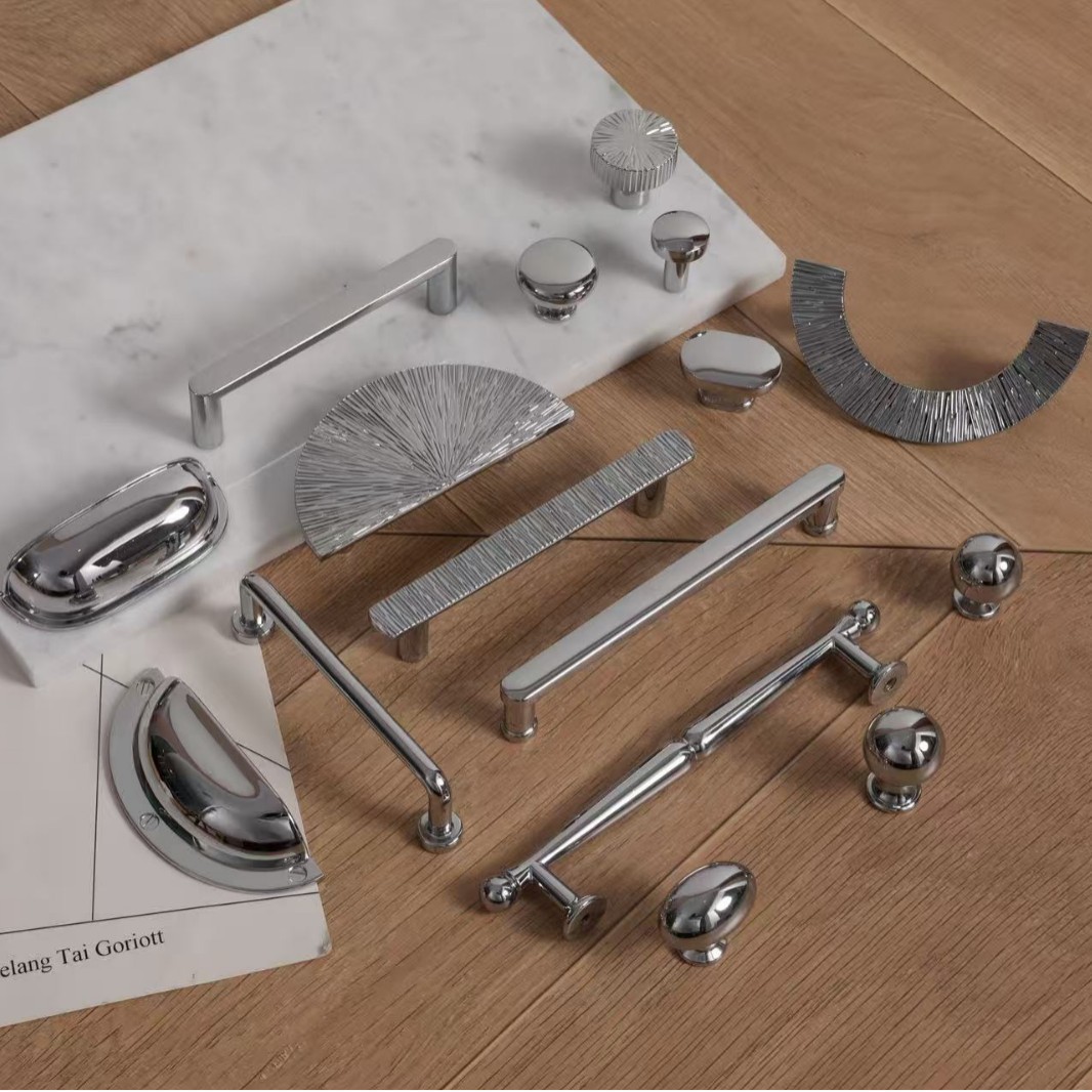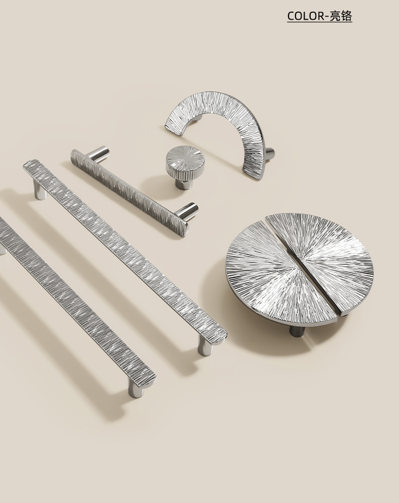柜门拉手新款美式简约橱柜亮银色拉手抽屉锌合金高档衣柜门把手