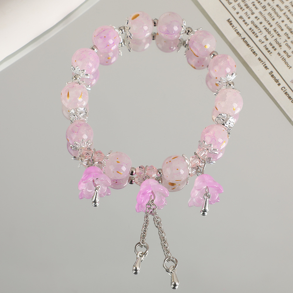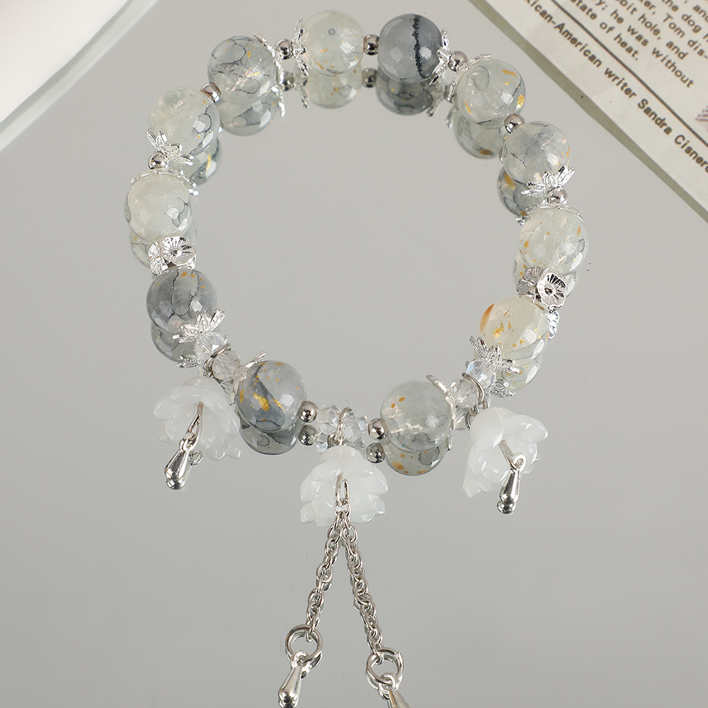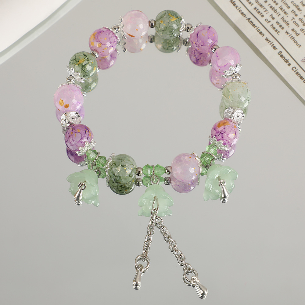 国风算盘珠铃兰花手链小众设计渐变水晶手串简约古风闺蜜学生手饰