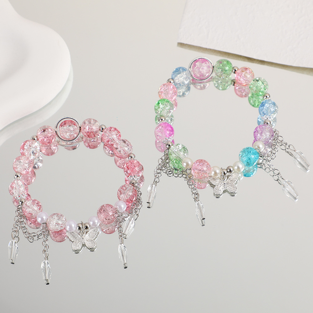 女性用の中国風のグラデーショングラスビーズブレスレット、新鮮で甘い蝶のペンダントブレスレット、ナイトマーケットの屋台のアクセサリー、親友へのギフト