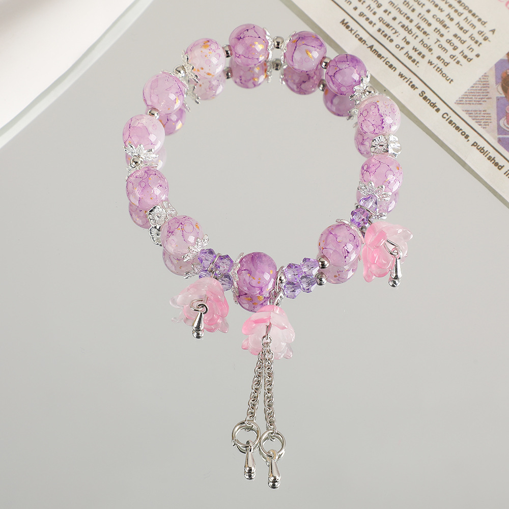 Guochao Xiangyun ペンダントガラスブレスレットインニッチアイスクラックカラービーズブレスレットスイートガールフレンドブレスレットジュエリーギフト