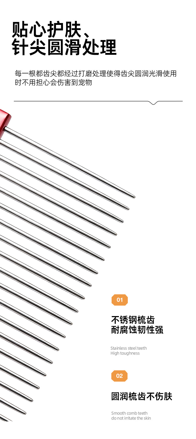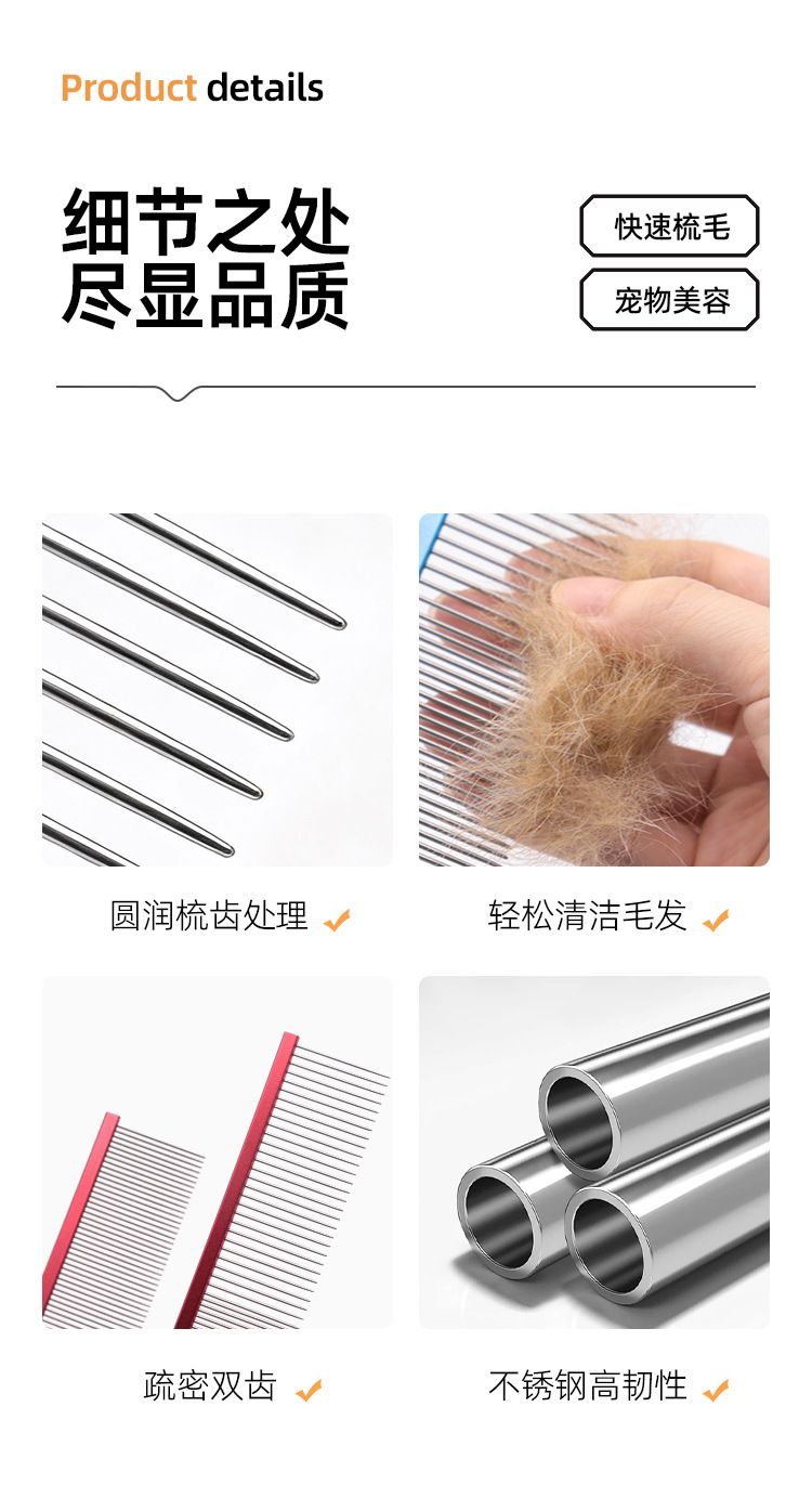 メーカー卸売りステンレス直列櫛ペット開結櫛子脱毛理髪櫛ペット清潔美容ツール