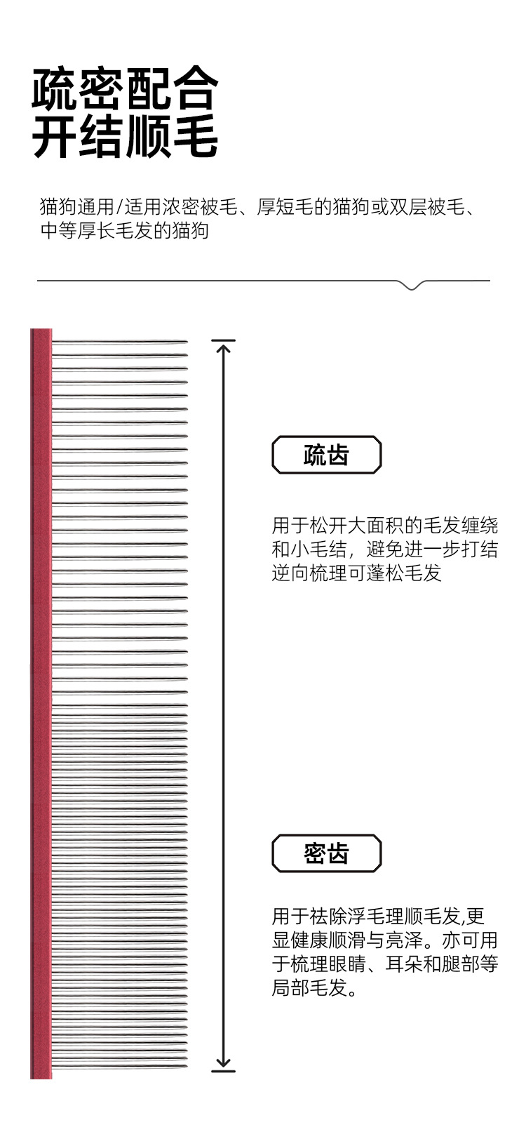 リチャオダ220ペット用直通コーム、グルーミングコーム、犬猫の毛のもつれ解消、毛並みの改善、もつれ解消ツール
