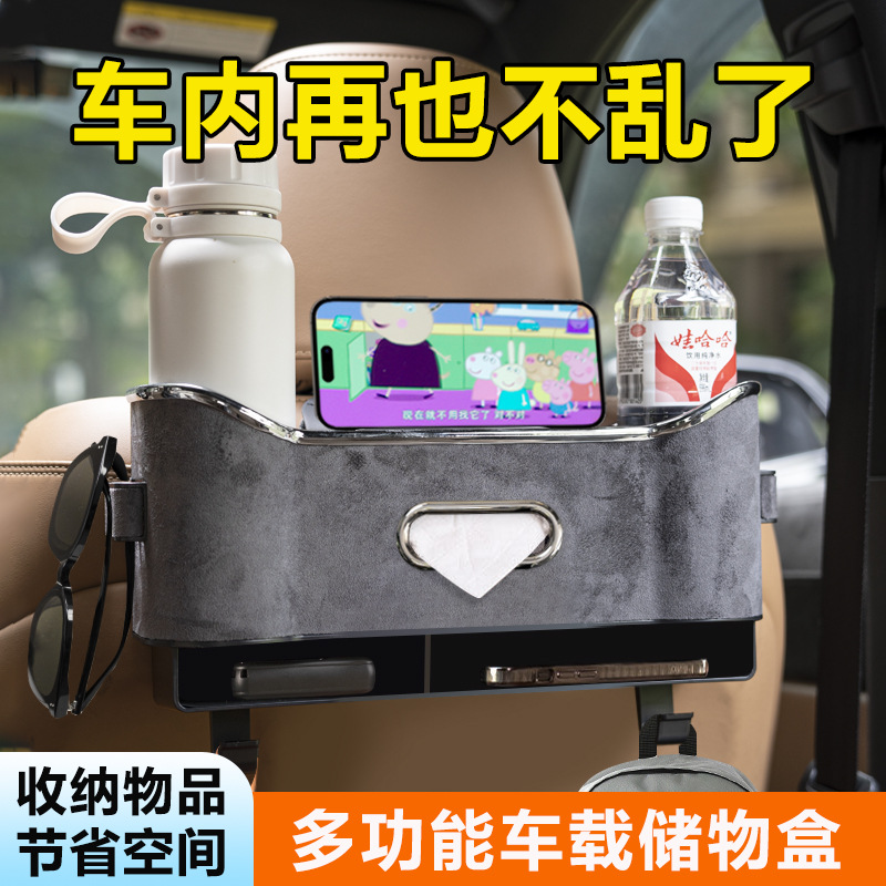 車のティッシュの箱の高級な越境多機能の自動車のシートの背中の収納の箱のフックのコップの棚の引き出しの箱