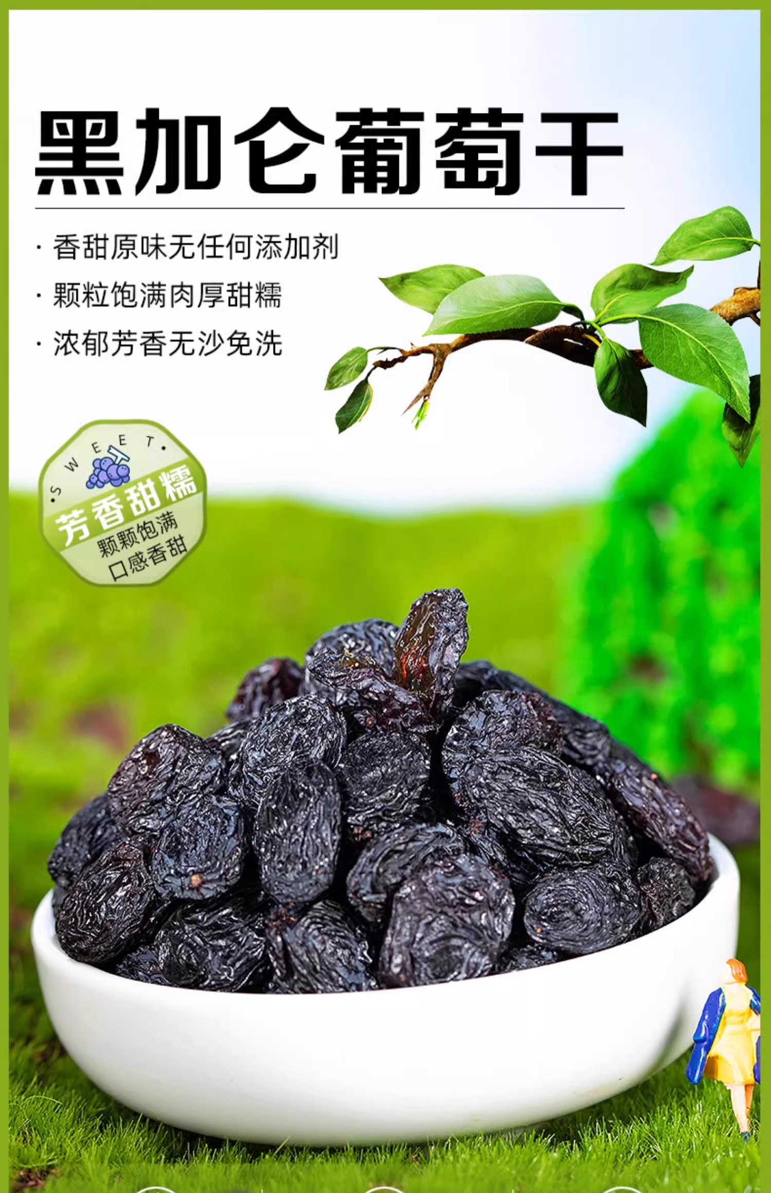包装规格 特大黑加仑葡萄干250g*2袋,特大颗粒黑加仑葡萄干250g*1袋,特大颗粒黑加仑葡萄干250g*4袋,特大颗粒黑加仑葡萄干1000g*2袋