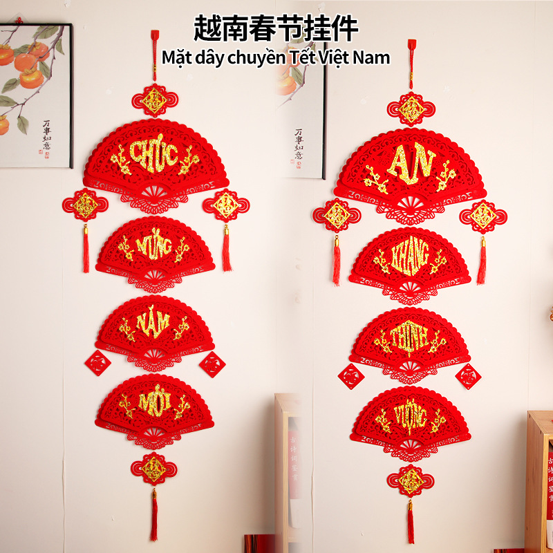 越南文字新年新款春节装饰挂件过年布置场景外贸爆款扇形无纺布