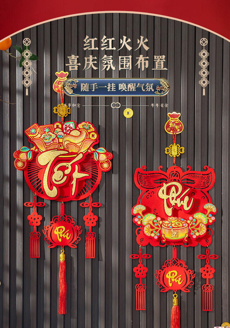 2026年不織布植毛フェルトベトナム文字春節新年飾り物吊り下げ飾り既製品人気商品卸売