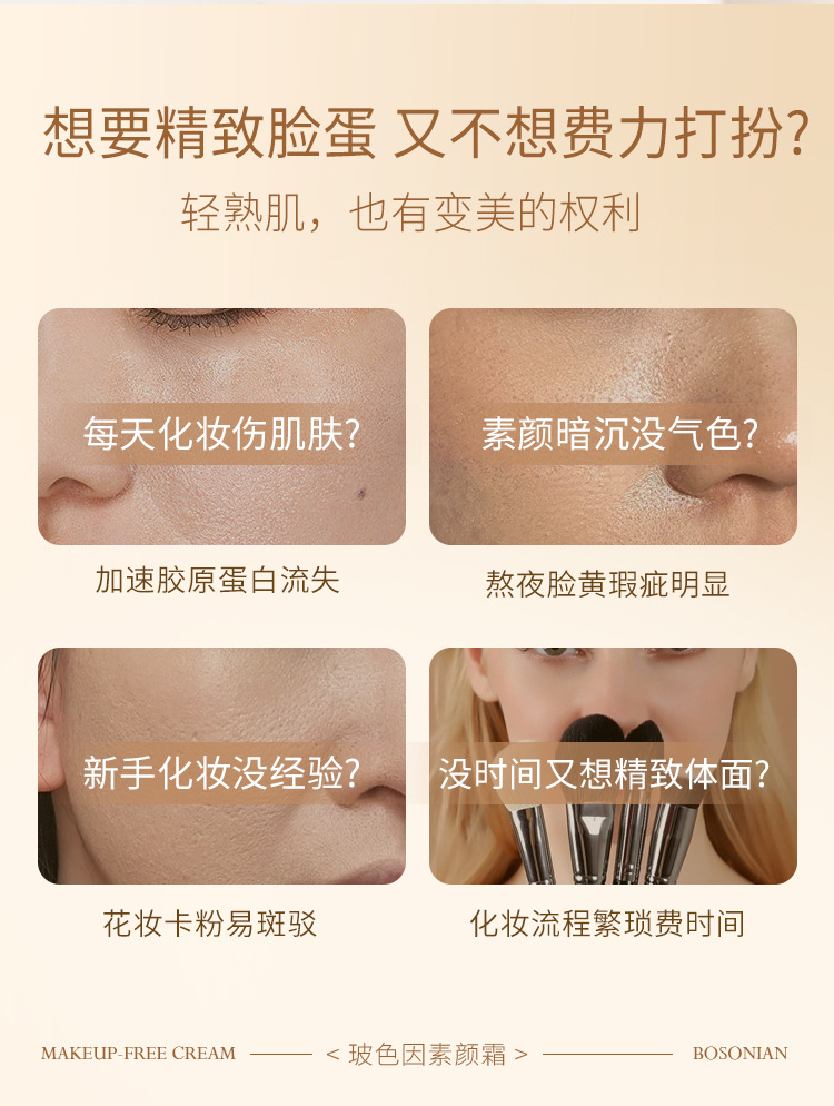 抖音爆款玻色因焕亮精华素颜霜遮瑕提亮养肤自然美颜清透素颜霜