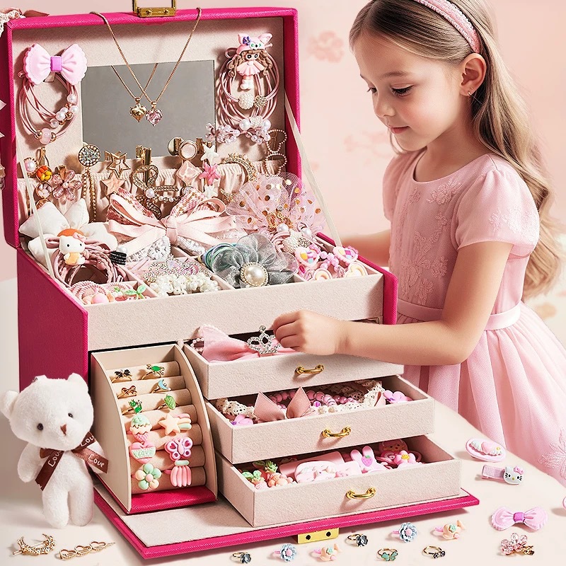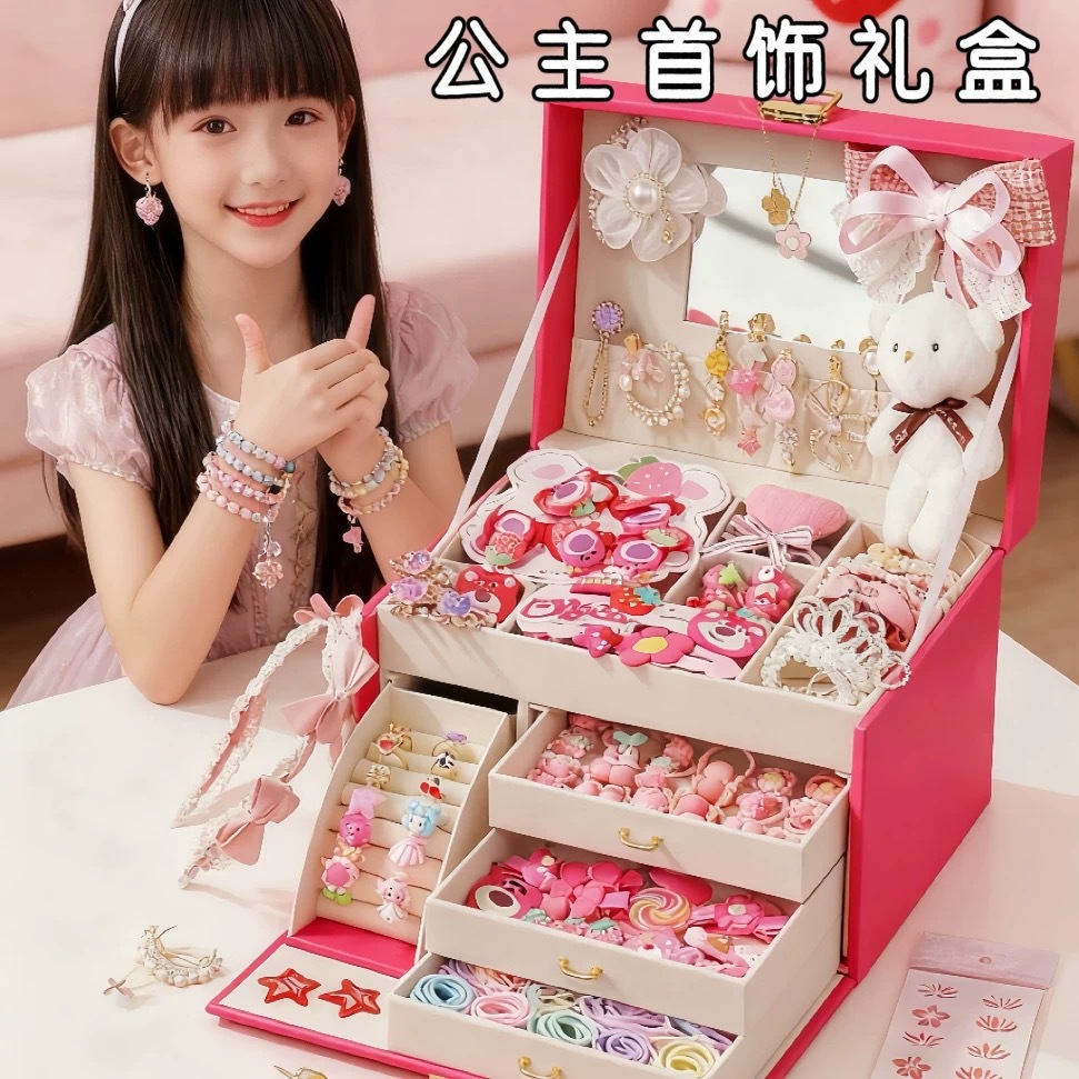 女孩首饰盒女童发饰DIY发夹头绳儿童玩具戒指小女生四层礼盒礼物
