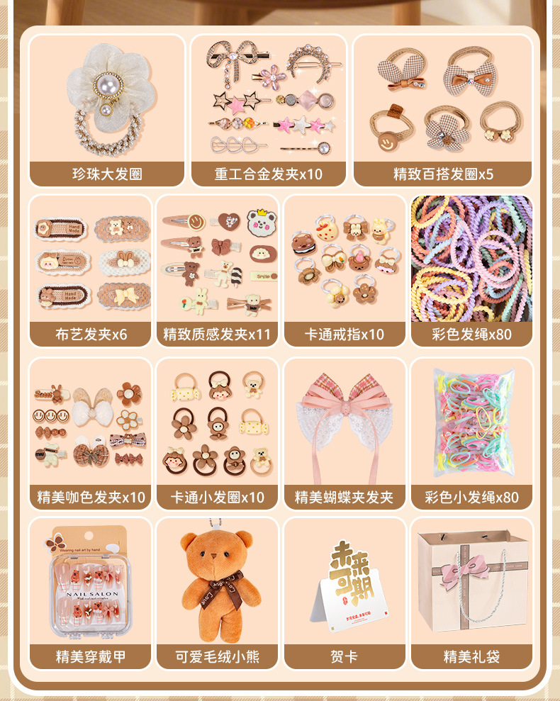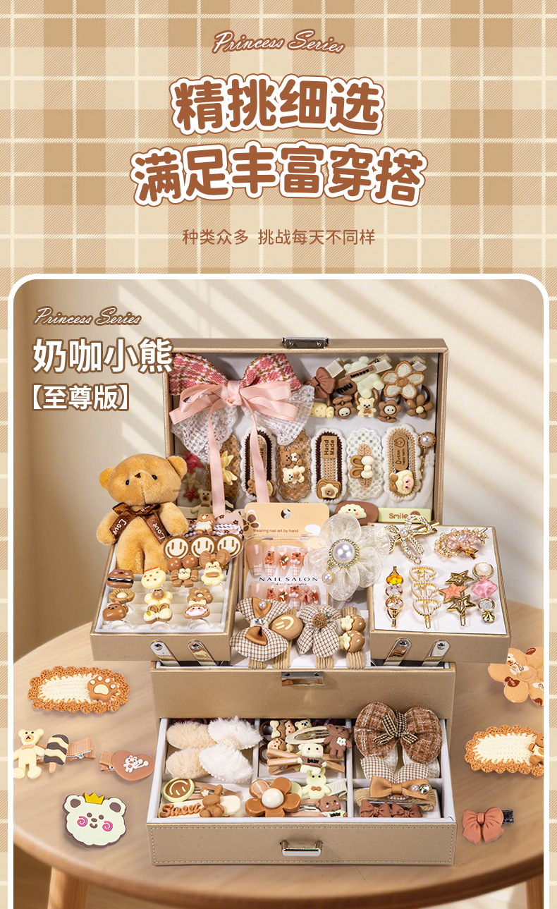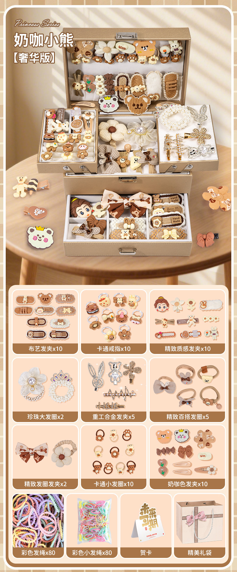 可爱奶咖发饰礼盒泰迪熊公仔发夹毛绒玩具创意娃娃儿童女孩礼物