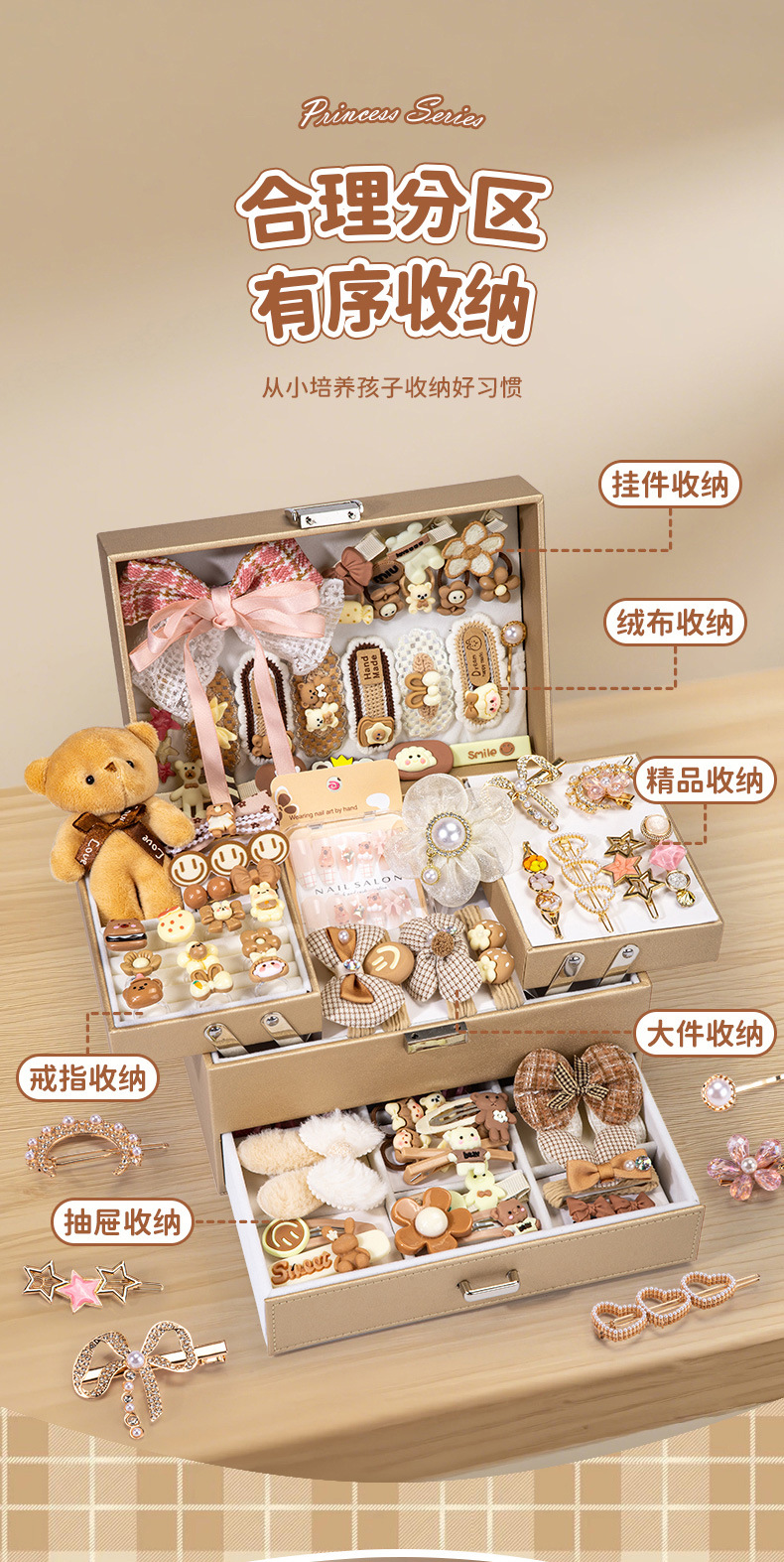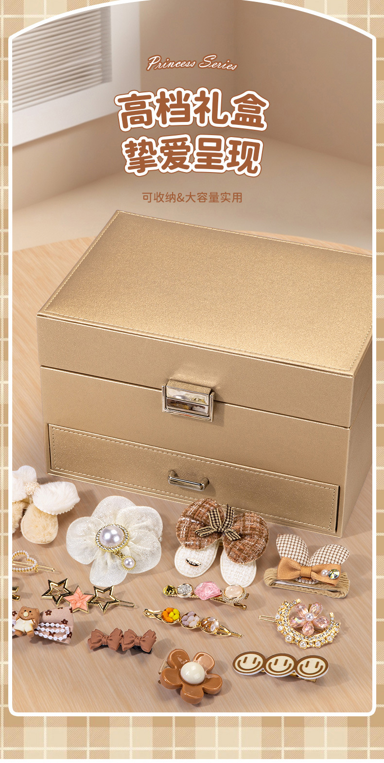 新款高端女童首饰盒发饰小女孩玩具发卡韩版头绳发夹6岁8生日礼物