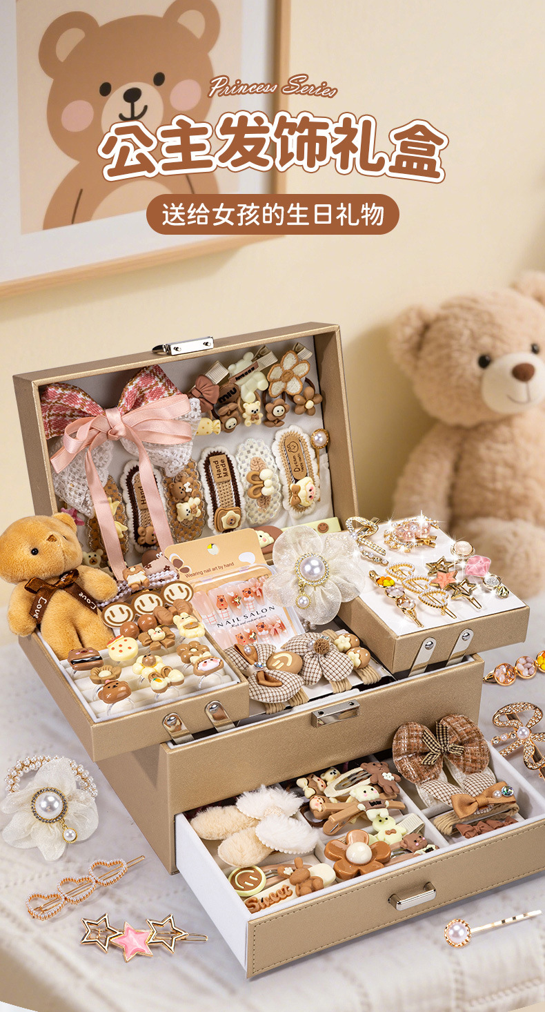 ハイエンドの女の子のヘアアクセサリーギフトボックス子供のジュエリーボックスプリンセスジュエリーセット女の子の赤ちゃんの誕生日ギフト