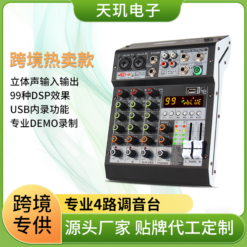 4路内置99DS带压缩USB蓝牙音响舞台演出婚庆会议小型家用调音台