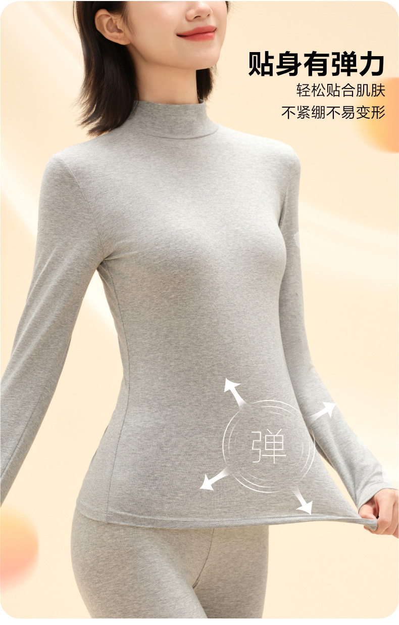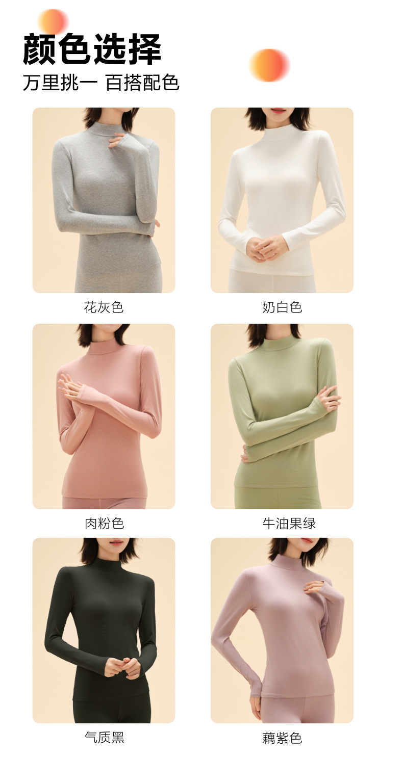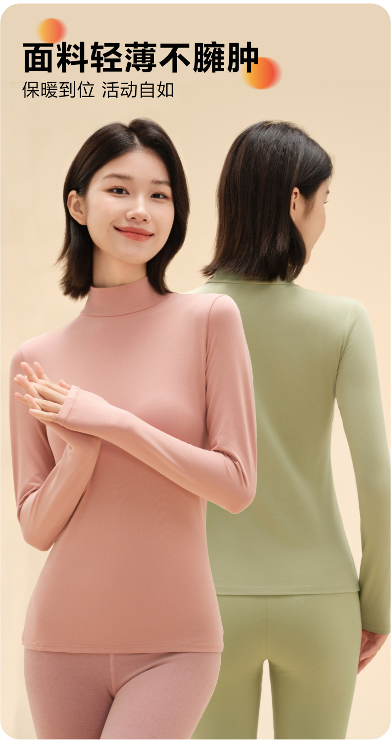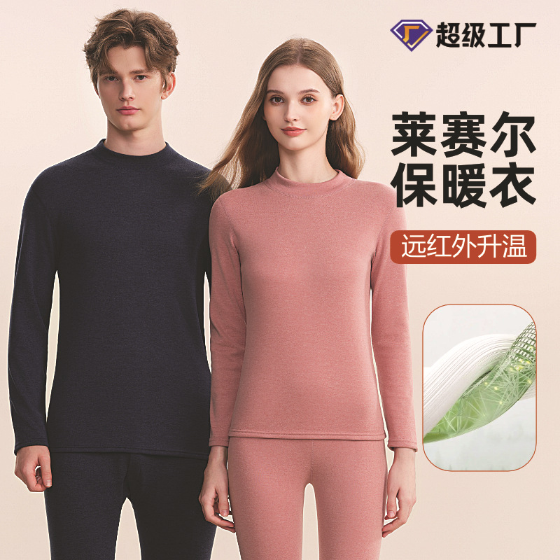 莱赛尔半高领保暖内衣男士加绒冬季款情侣保暖套装中领秋衣秋裤女
