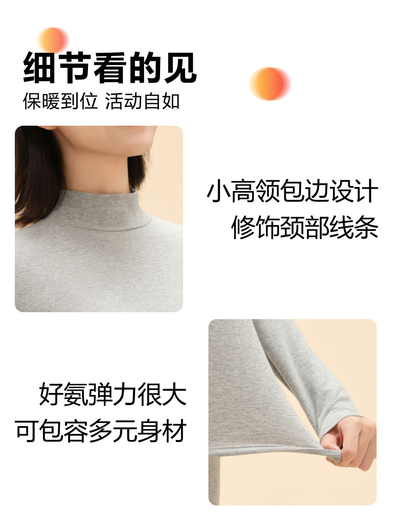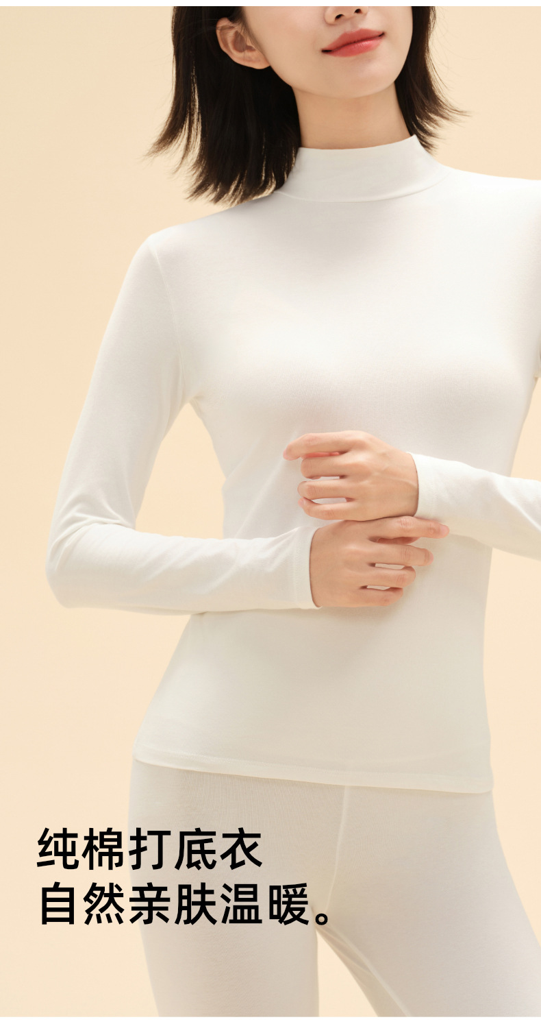 纯棉舒绒秋衣打底衫女士秋冬半高领内搭单件保暖内衣全棉毛衫发热