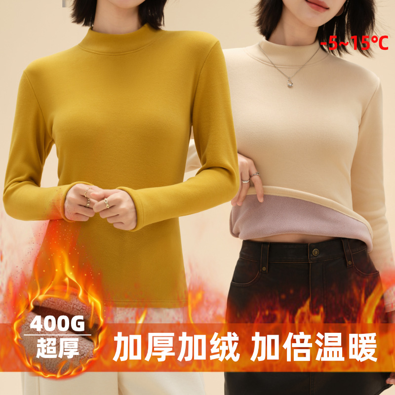 2025新款女士秋衣中高领打底衫磨毛德奥一体绒无痕保暖内衣女批发
