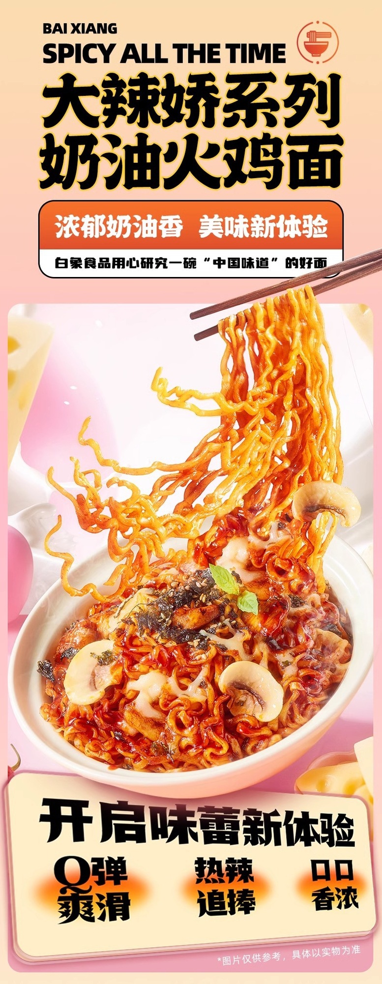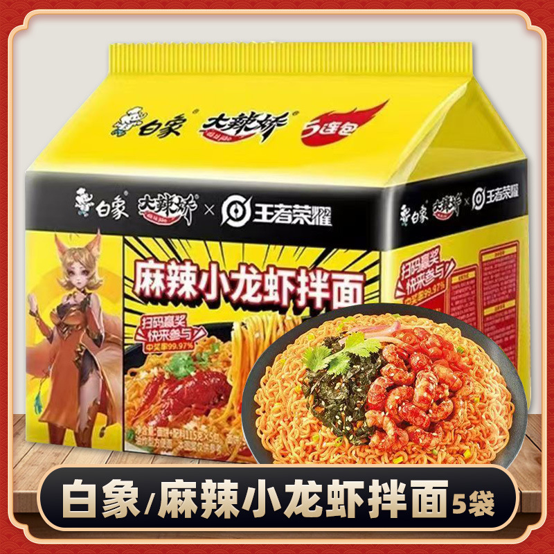 包装规格 白象大辣娇-经典火鸡拌面119克*5袋,白象大辣娇-麻辣小龙虾拌面115克*5袋,白象大辣娇-奶油味火鸡拌面116克*5袋,白象大辣娇-咸蛋黄火鸡拌面115克*5袋